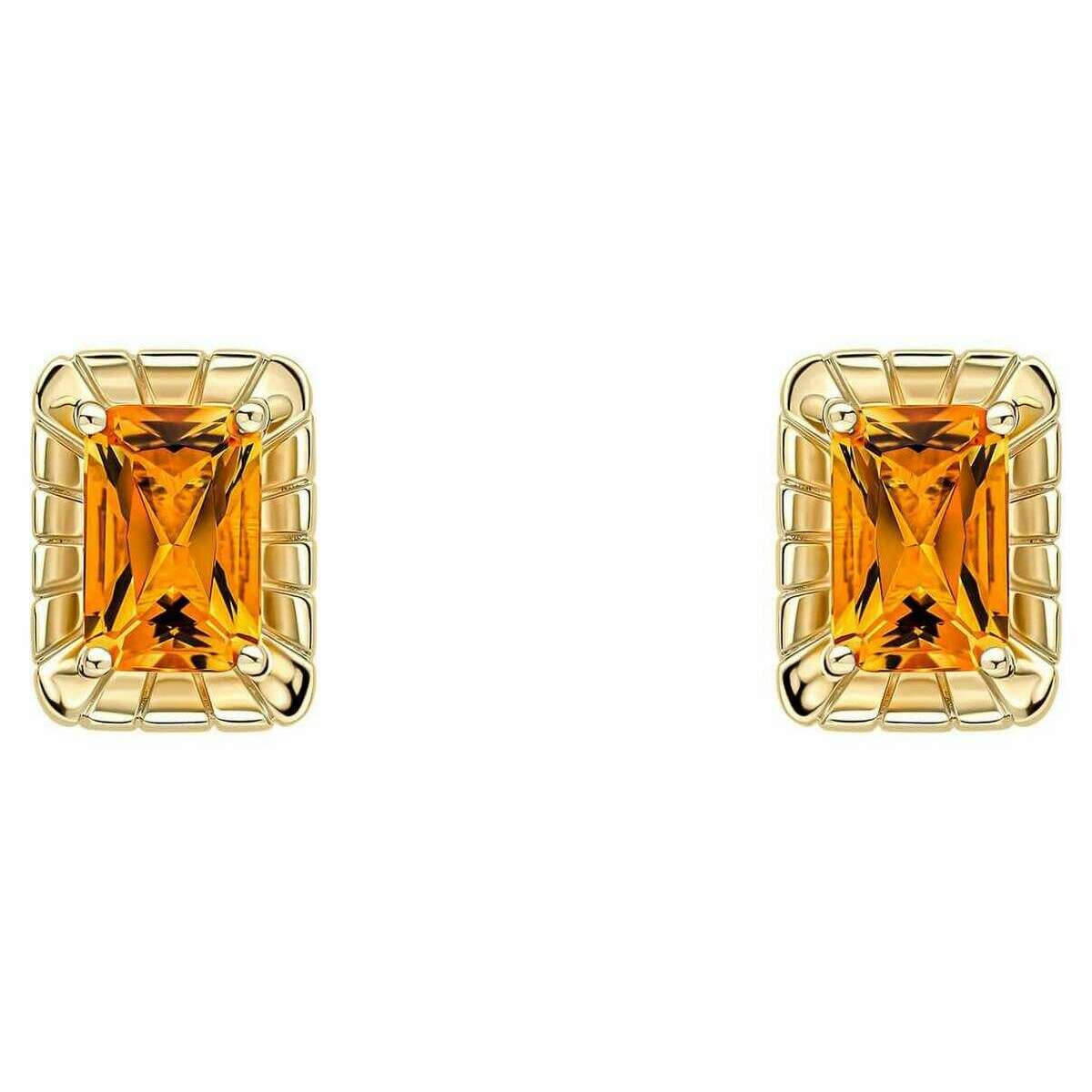 Elements Gold 詳細な八角形シトリン 9ct ゴールド イヤリング - ゴールド/オレンジ