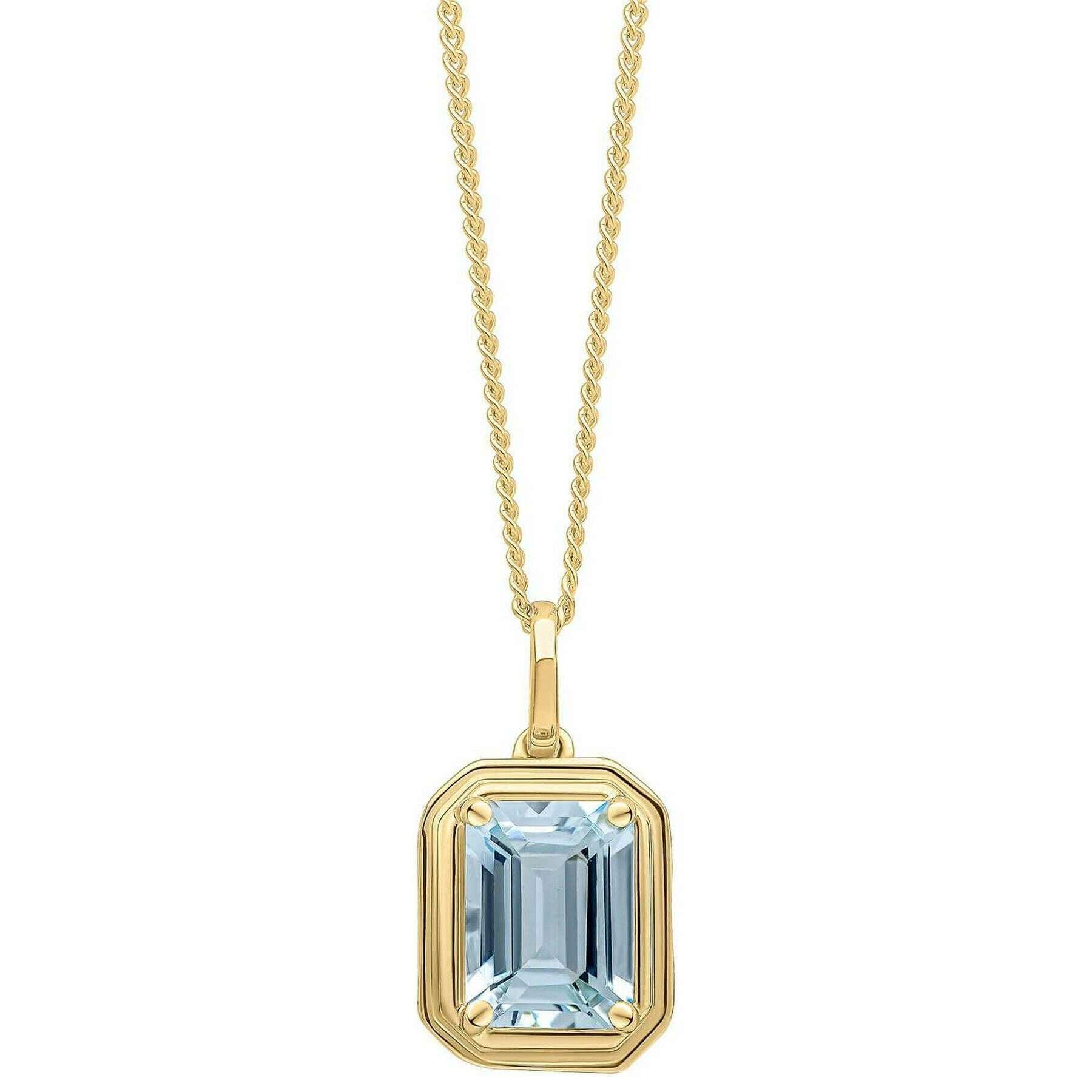 Elements Gold 細長い八角形アクアマリン 9ct ゴールド ペンダント - ゴールド/ブルー