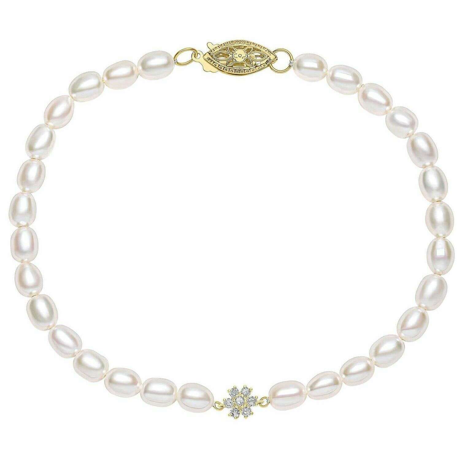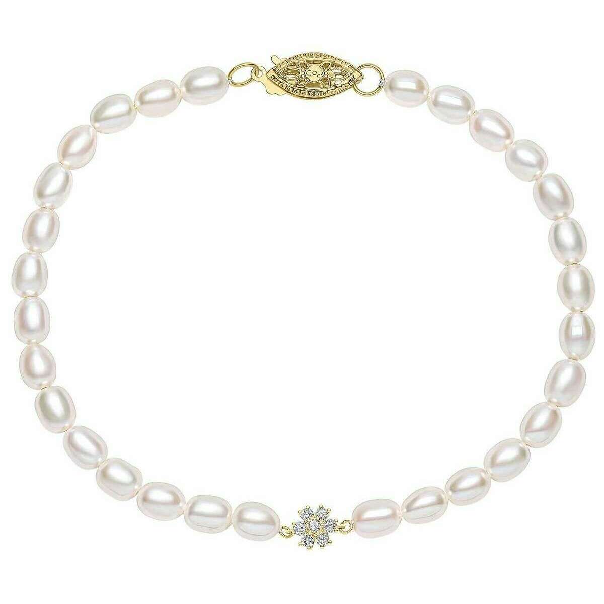 Elements Gold シード パールとフラワー 9ct ゴールド ブレスレット - ゴールド/ホワイト