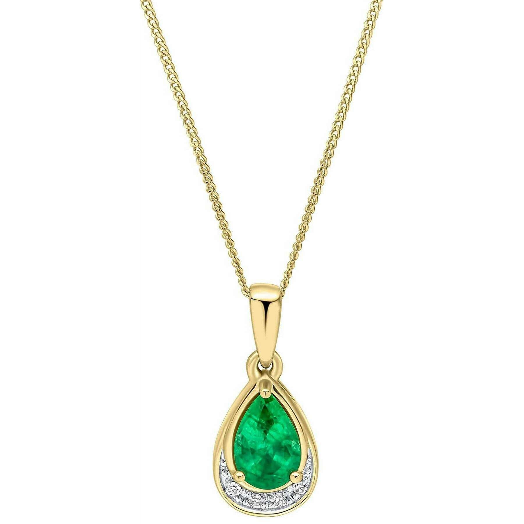 Elements Gold ティアドロップ エメラルドとダイヤモンド 9ct ゴールド ペンダント - グリーン