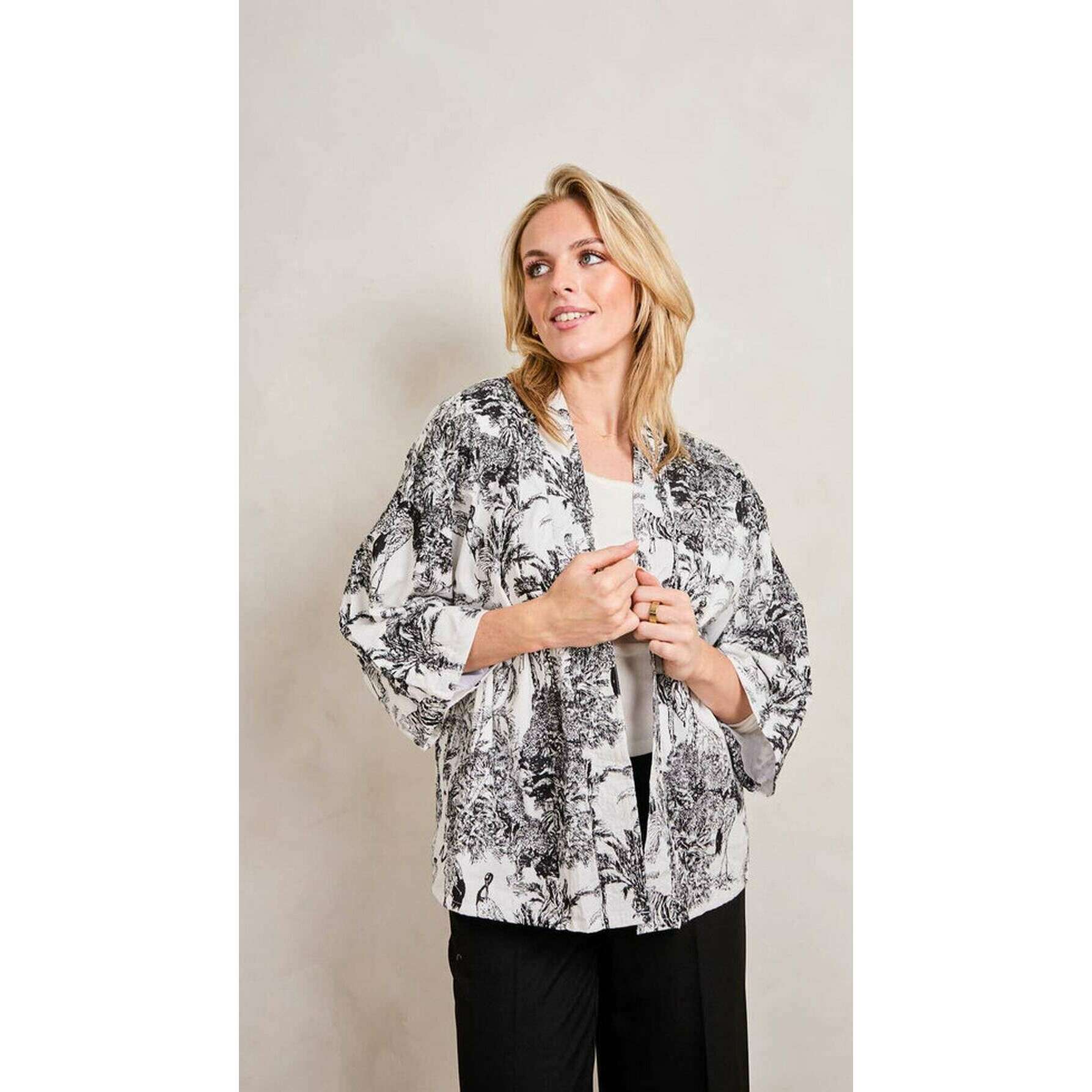 デザイナー Elie Beaumont による、100% 天然綿から作られたこの黒/白の鶴の女性用セレンディピティ ショート 着物です。すべてのジャケットには elie beaumont のパッケージが付属します。 Elie Beaumont Serendipity Short着物 - Black/White Craneは、きっと気に入っていただける本当に目立つ外観を提供します。大胆な色と複雑なデザインがこの着物ジャケットを本当に際立たせています。この着物は総裏地付きで通気性が良く、袖も長めです。