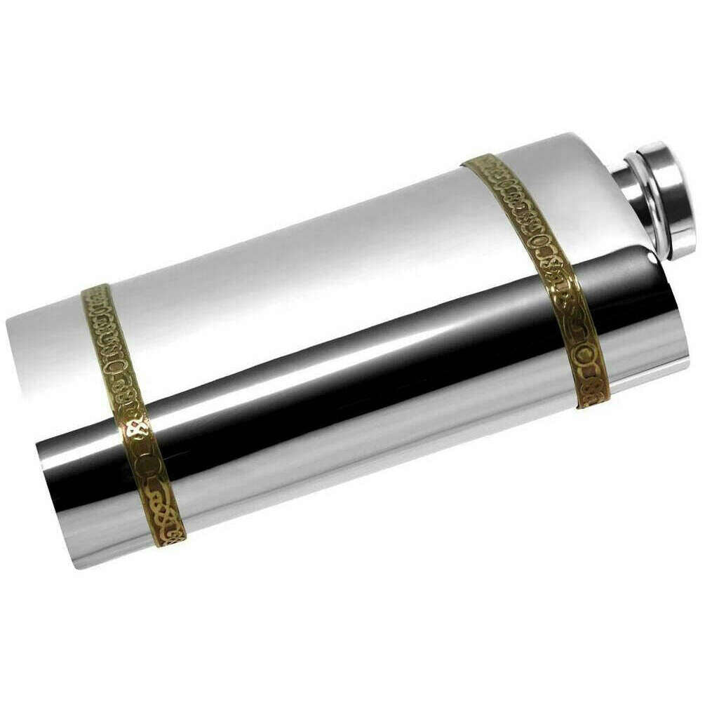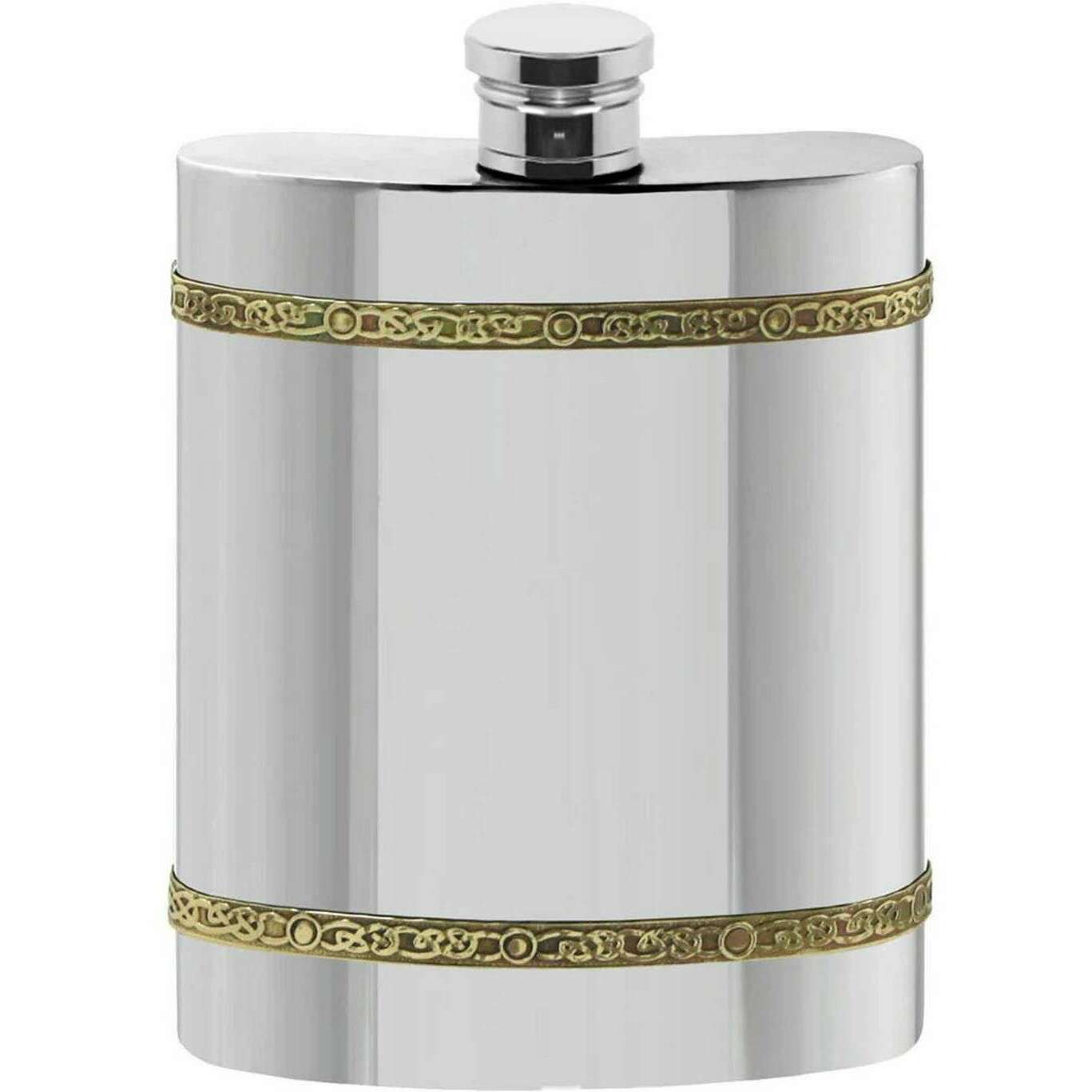 イングリッシュピューターカンパニー6オンスケルトブラスバンドフラスコ - シルバー/ゴールド