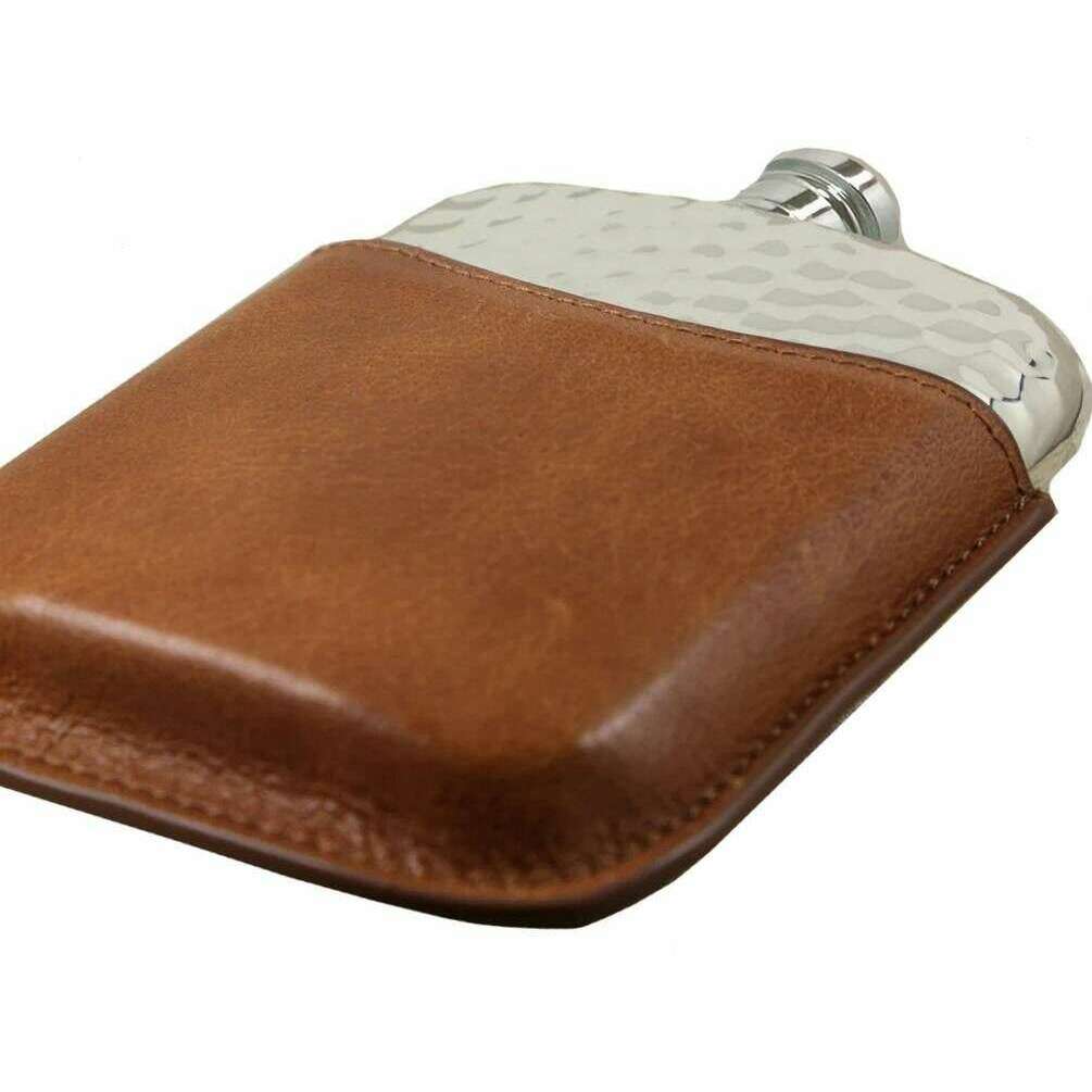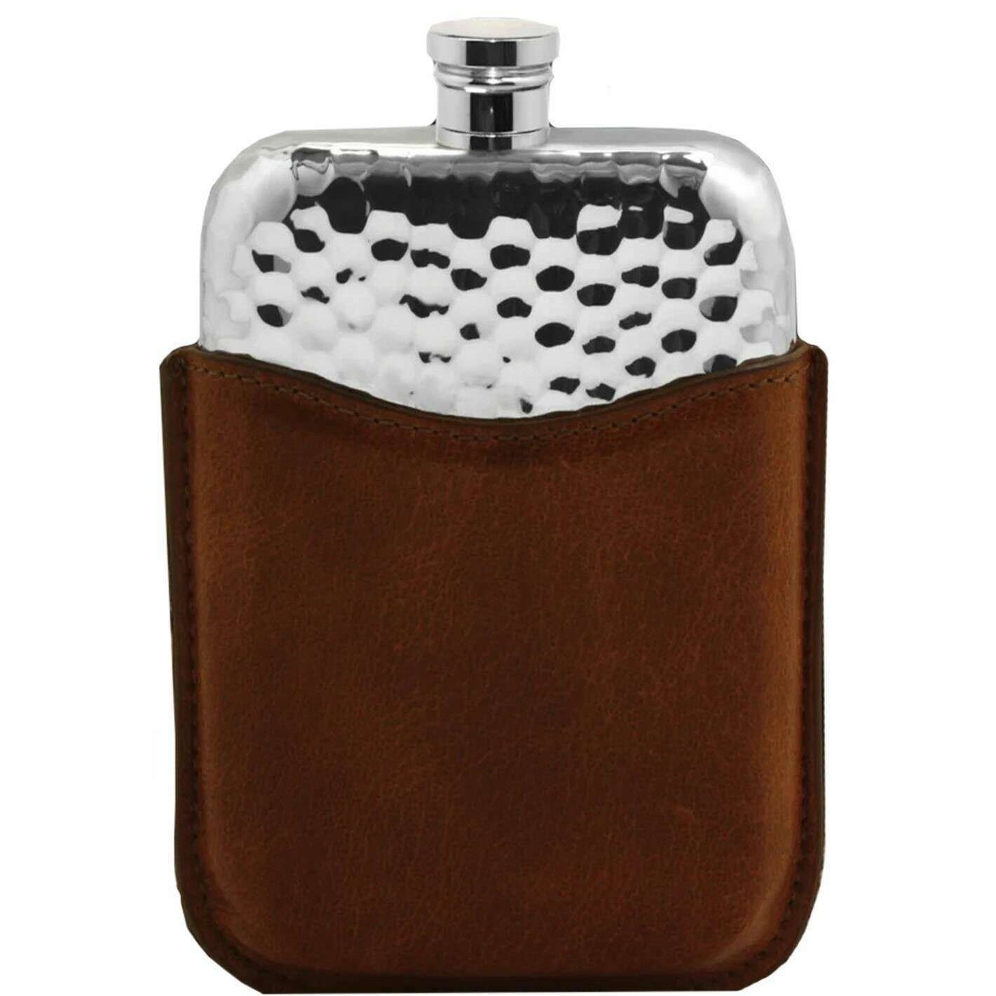 イングリッシュピューターカンパニー6オンスハンマー付き財布フラスコとポーチ - シルバー/ブラウン