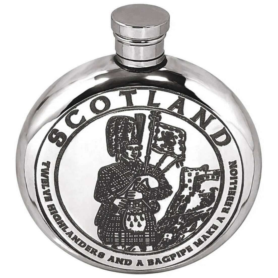 イングリッシュピューターカンパニー6オンスハイランドパイパーフラスコ - シルバー