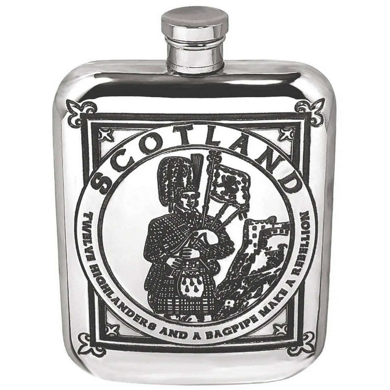 イングリッシュピューターカンパニー6オンスハイランドパイパーフラスコ - シルバー