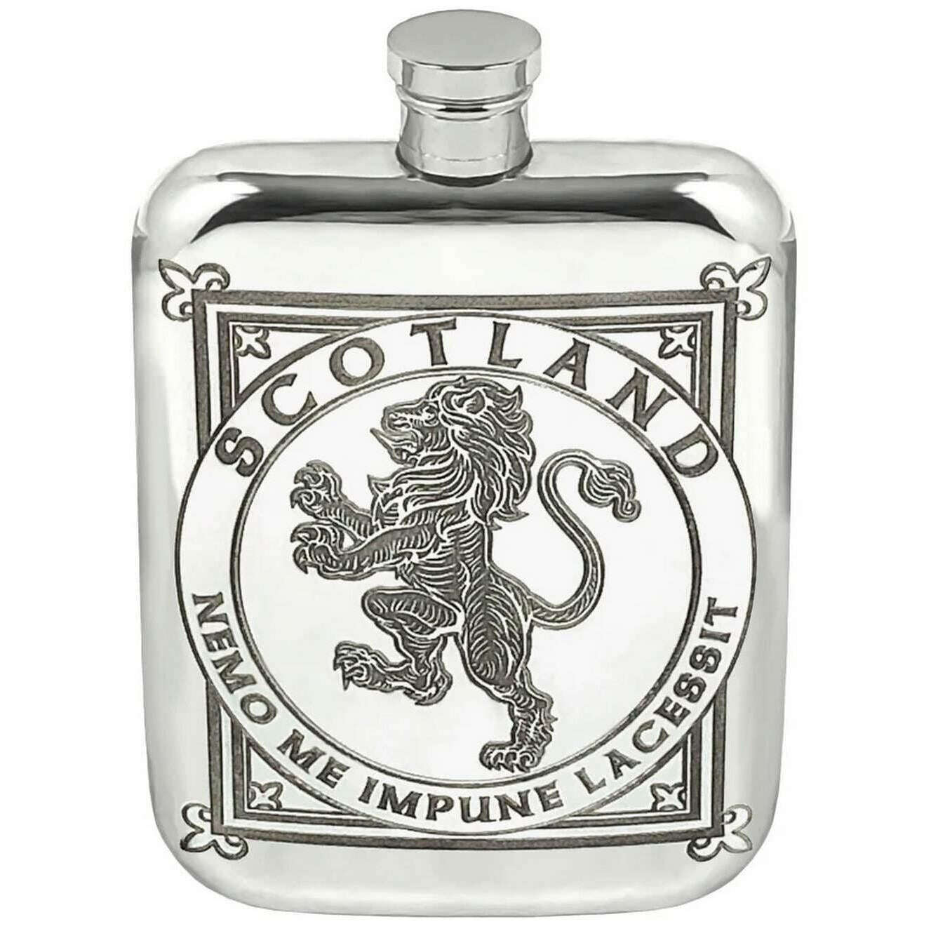 イングリッシュピューターカンパニー6オンスライオン横行フラスコ - シルバー