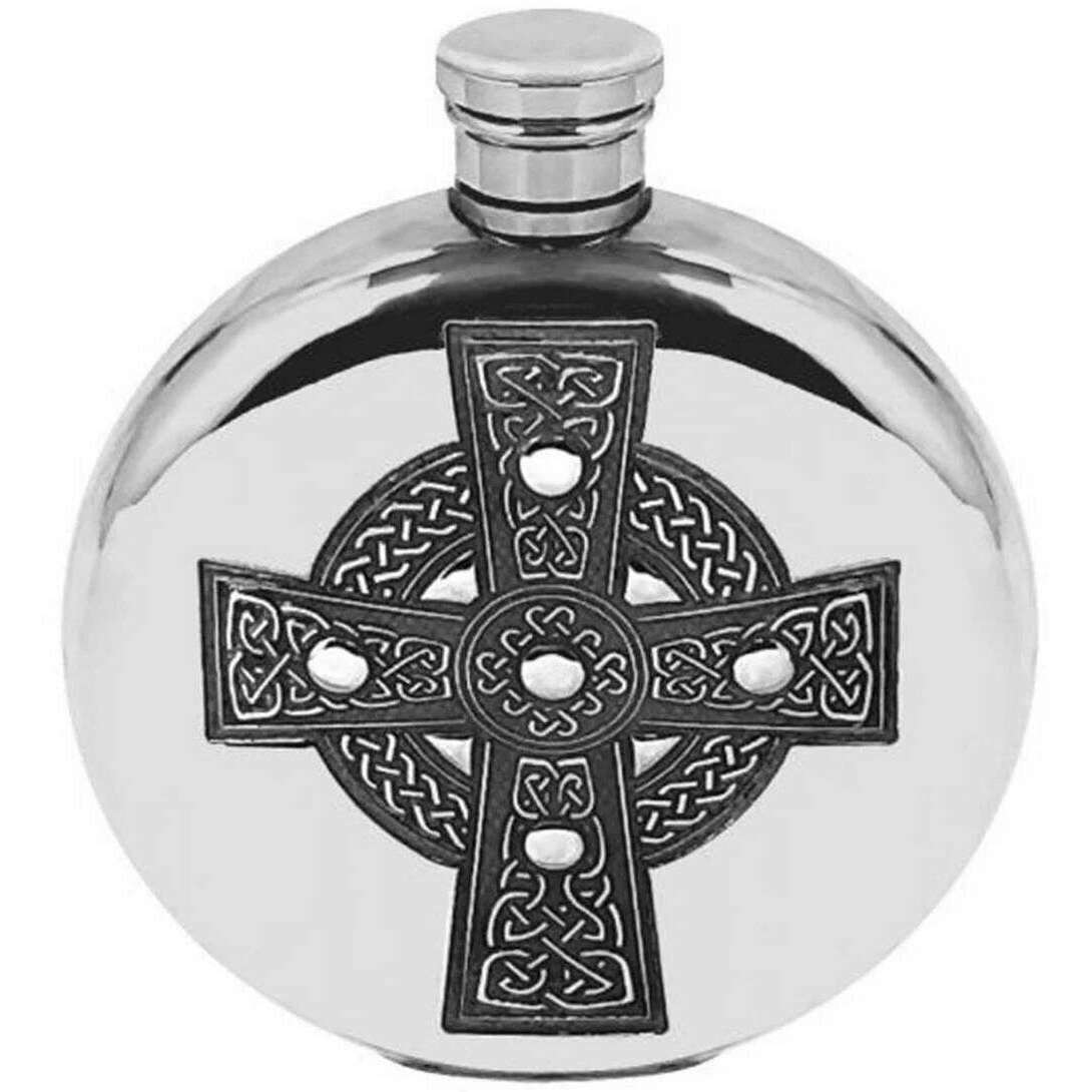 イングリッシュピューターカンパニー6オンスラウンドケルティッククロスフラスコ - シルバー