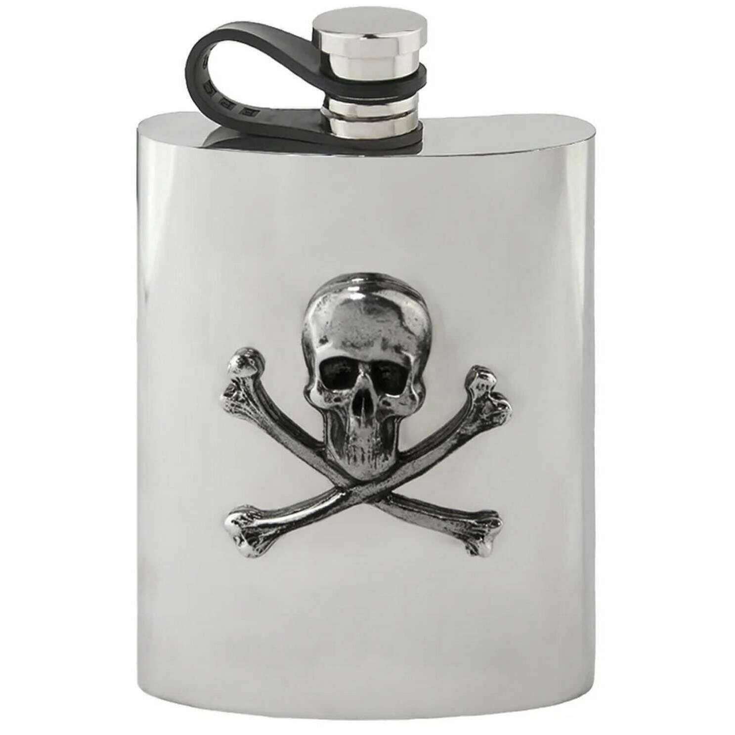 イングリッシュピューターカンパニー6オンススカルとクロスボーンフレキシキャップヒップフラスコ - シルバー