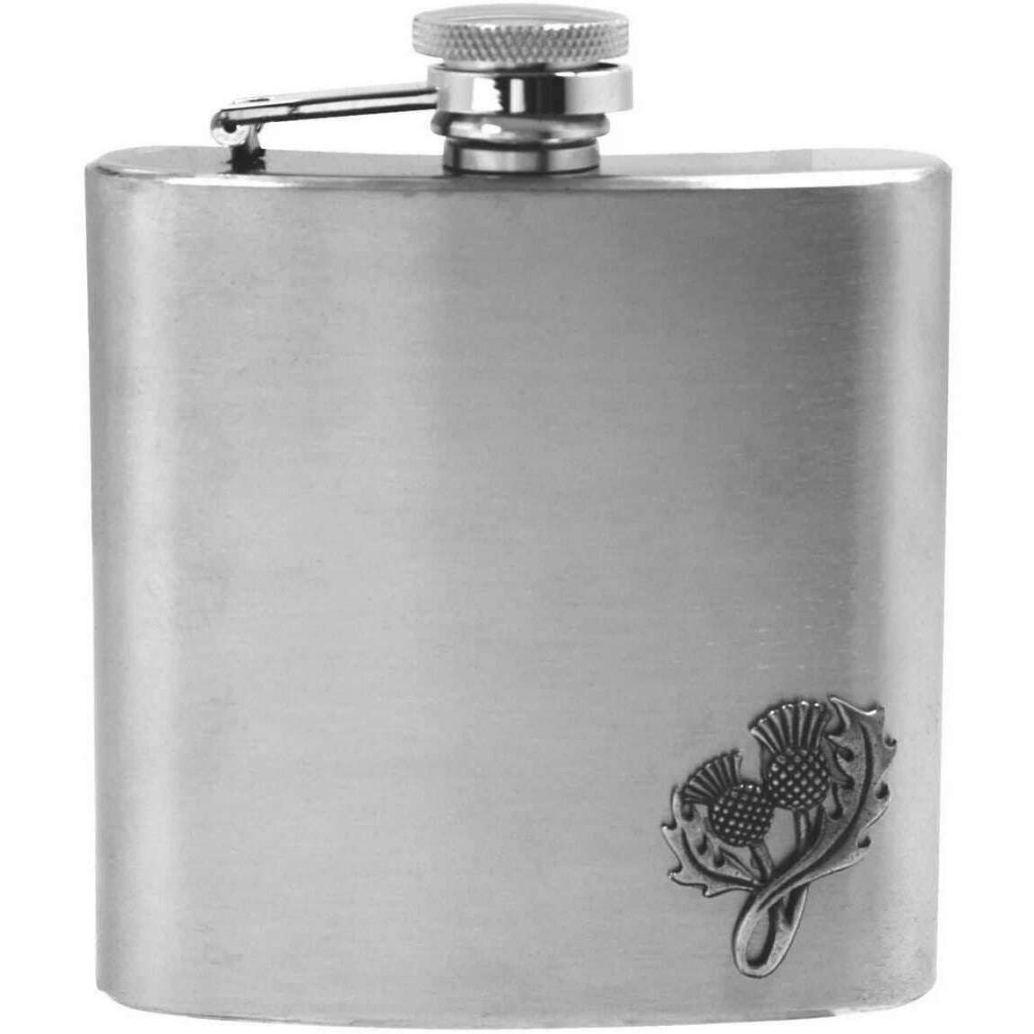 イングリッシュピューターカンパニー6オンスアザミバッジフラスコ - シルバー
