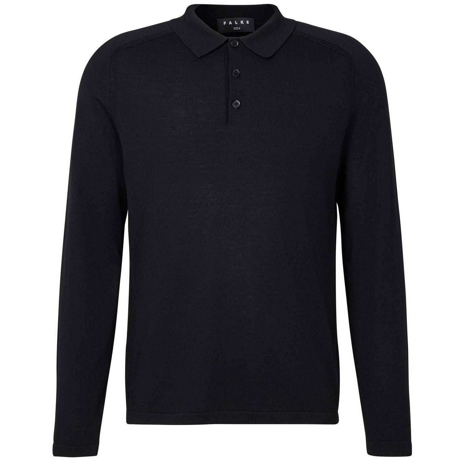 Falke メリノ ウルトラファイン ロング スリーブ ポロ シャツ - ブラック