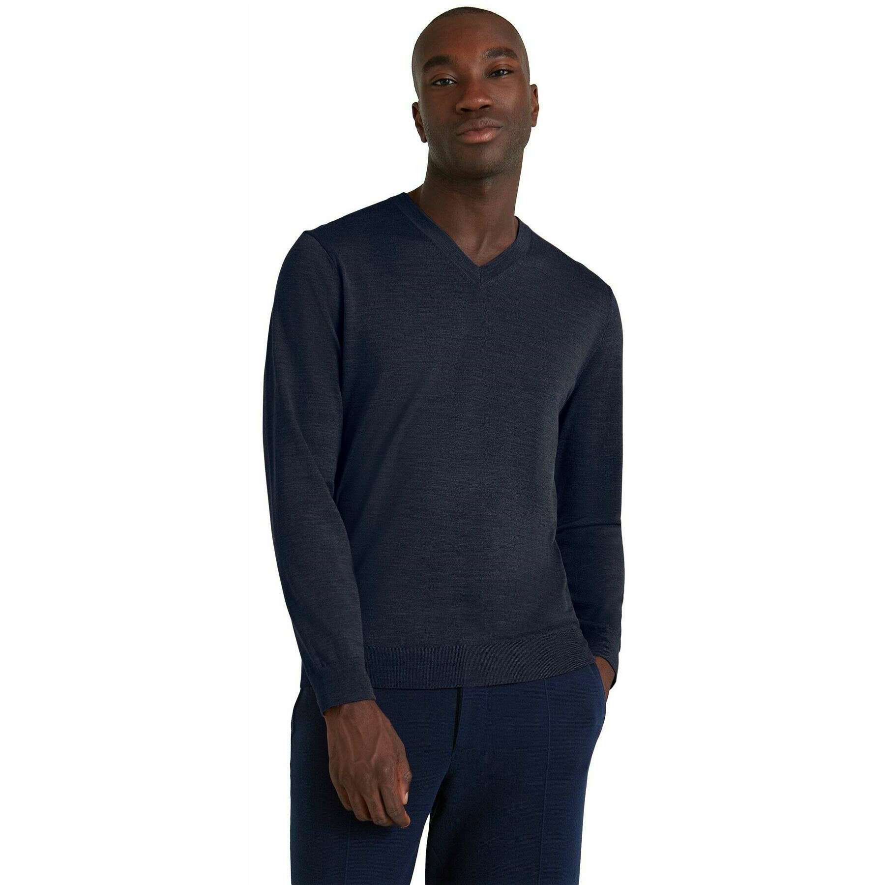 Falke メリノウルトラファイン V-ネックセーター - スペースブルー
