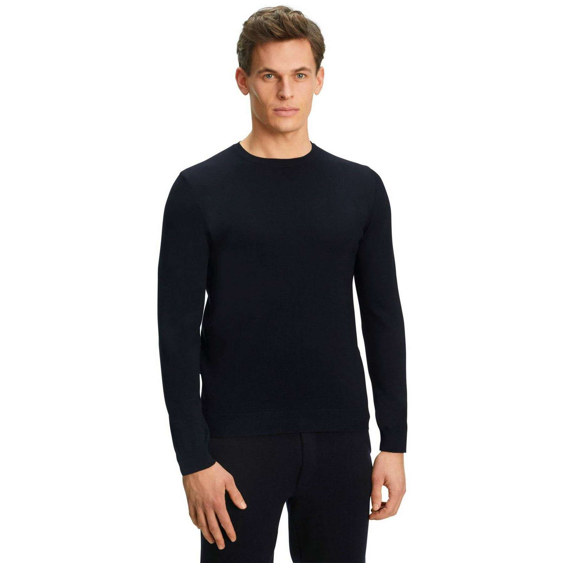 Falke メリノ X-ファインクルーネックセーター - ナイトスカイネイビー