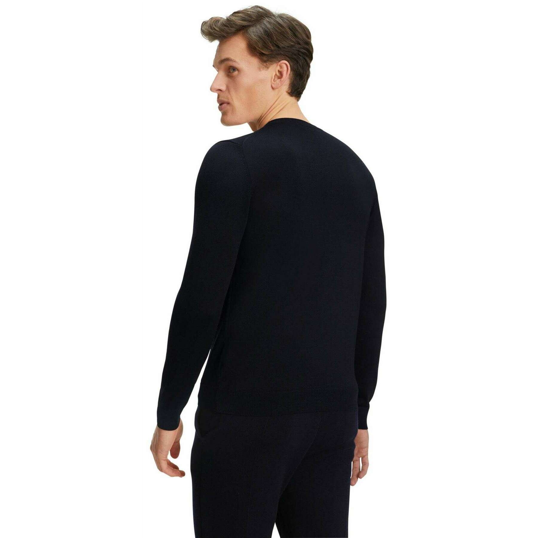 • ファインジャージニット、フレンチショルダーシーム、ファインリブネックライン、胴体と袖に伸縮性リブカフス、ミュールシングフリーメリノウール、レギュラーフィット