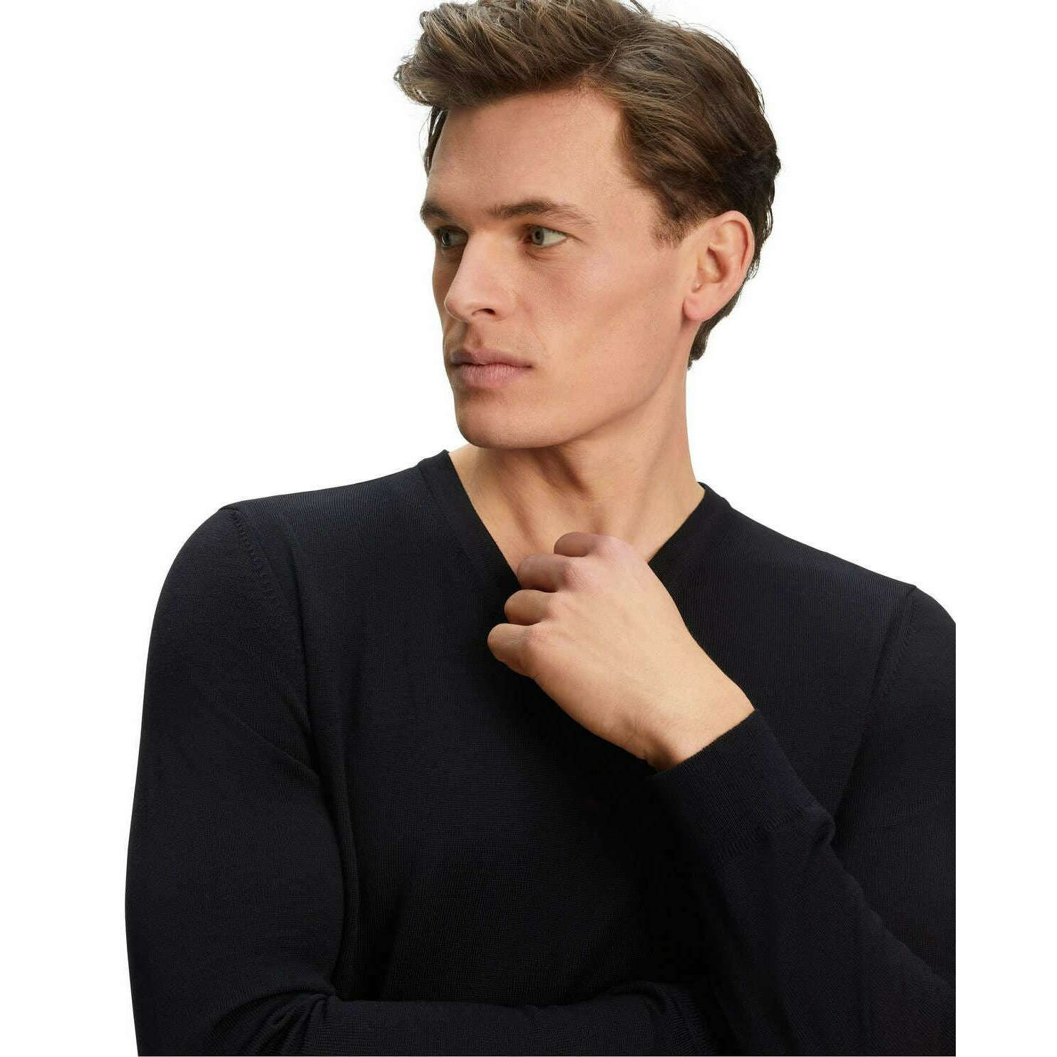 Falke メリノ X-罰金 V-ネックセーター - ブラック