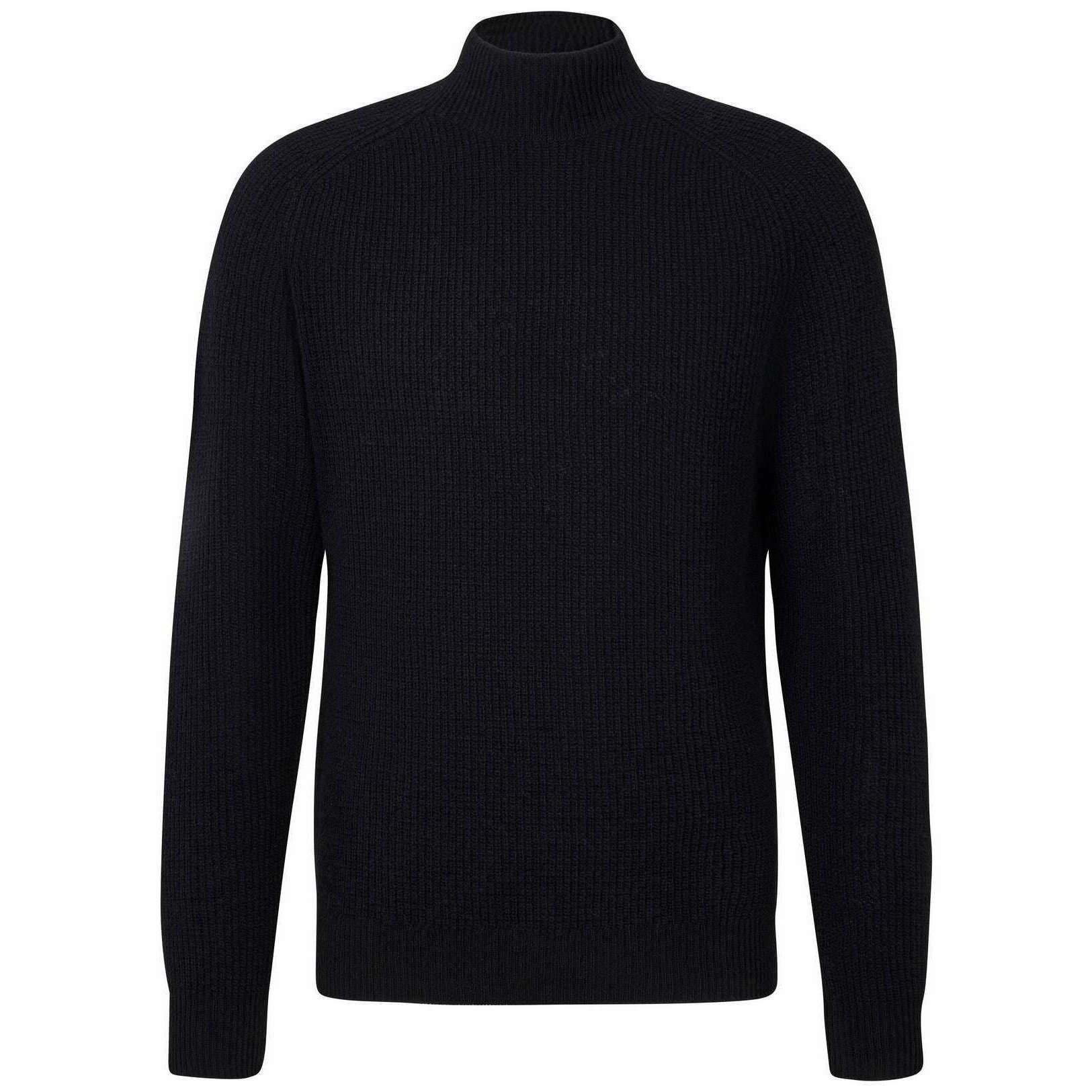 Falke リブ ラムズウール モックネック セーター - ブラック