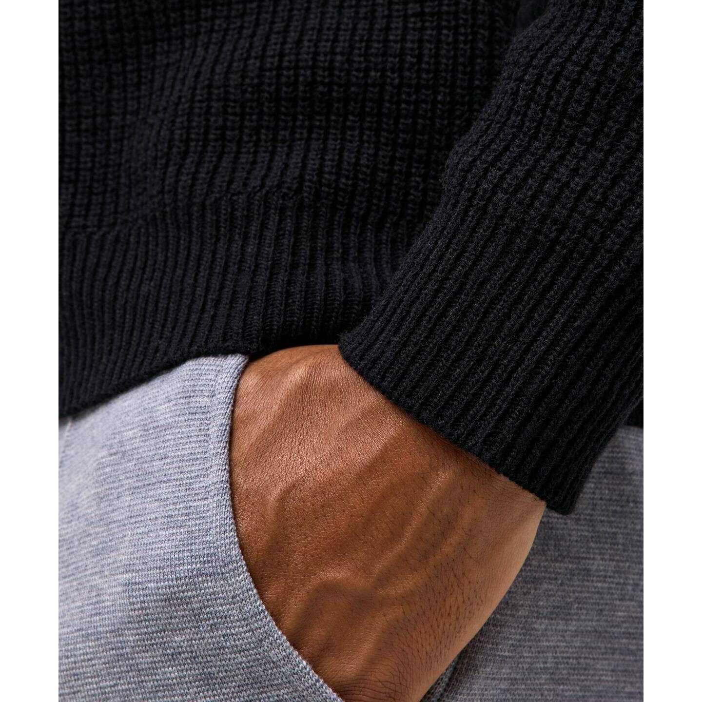 メンズリブラムウールモックネックセーターのご紹介です。 Falke, 80% バージンウールと 20% リサイクルポリアミドから作られており、色は黒色です。また、黒のジャンパーは無地のパターンでデザインされています。このジャンパーを良好な状態に保つために、30度で洗濯機で洗うことをお勧めします。すべてのジャンパーには Falke パッケージが付属しています。の Falke リブ付きラムズウール モックネック セーター - ブラックは、冬のワードローブを時代を超越した必需品に格上げします。クラシックなデザインが伝統的なタッチを加え、豪華なラムウール構造が柔らかくぴったりとした感触を提供し、寒い秋と冬の日に耐えるのに最適です。スタイリッシュなサドルショルダー、モックカラー、リブ編みの袖口と裾が洗練されたシルエットを生み出し、環境に配慮したフルファッションのプレミアムな職人技が、今後何年にもわたって持続する品質と快適さを保証します。