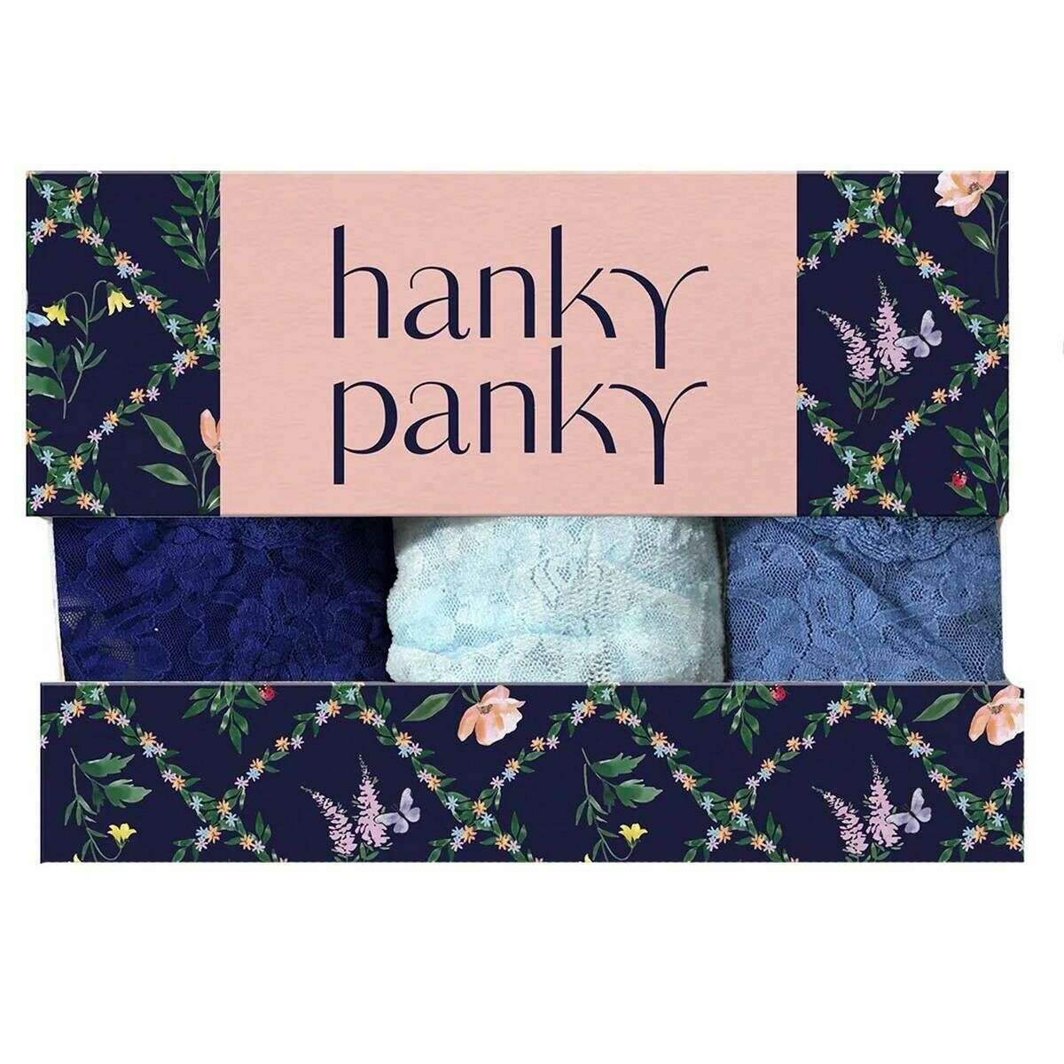 Hanky Panky シグネチャー レース オリジナル ライズ 3 パック Tバック - オデッセイ ブルー/ストーム クラウド/セレステ