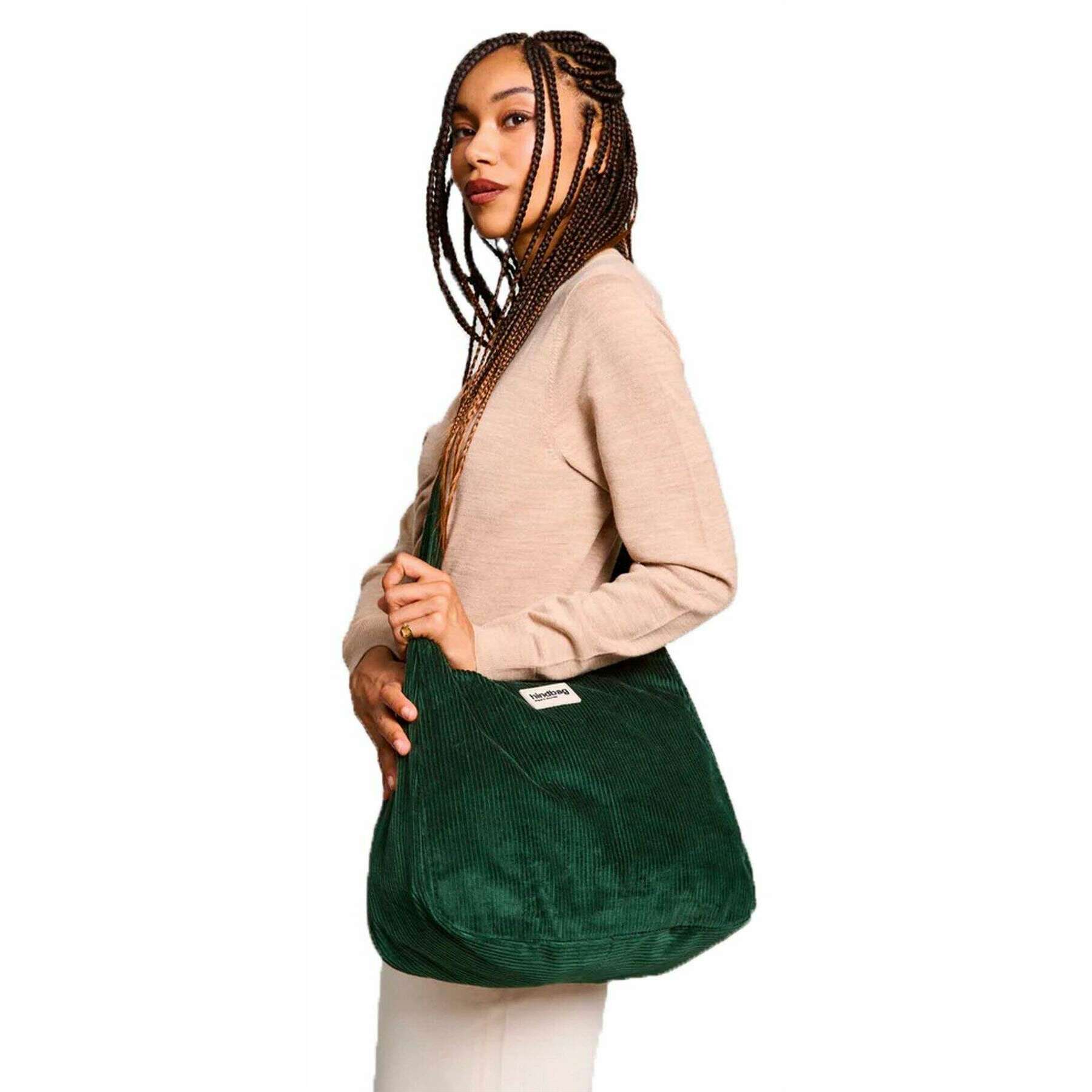 Hindbagのこのよく作られたユニセックスクレアホーボーバッグは、ベルベットの松の緑色で、100%オーガニックコーデュロイから製造されています。 29cm(高さ)x 36cm(幅)x 13cm(深さ)を測定します。すべてのバッグには、HindBagパッケージが付いています。 Hindbag Claire Hobo Bag -Velvet Pine Greenは、忙しい日を添えるのに最適な大きなショルダーバッグです。簡単に開閉できるダブルジップクロージャーを備えたこのバッグには、財布、電話、キー、小さなタブレット、メイクアップポーチ、サングラスなどの必需品が簡単になります。内側のジップポケットは、必需品を保護し、手の届く範囲に保ちます。調整可能なストラップはあなたのニーズに適応し、最適な快適さのために肩やクロスボディの上に着用することができます。毎日の着用に最適このバッグは、快適さとスタイルが1つに丸められています。