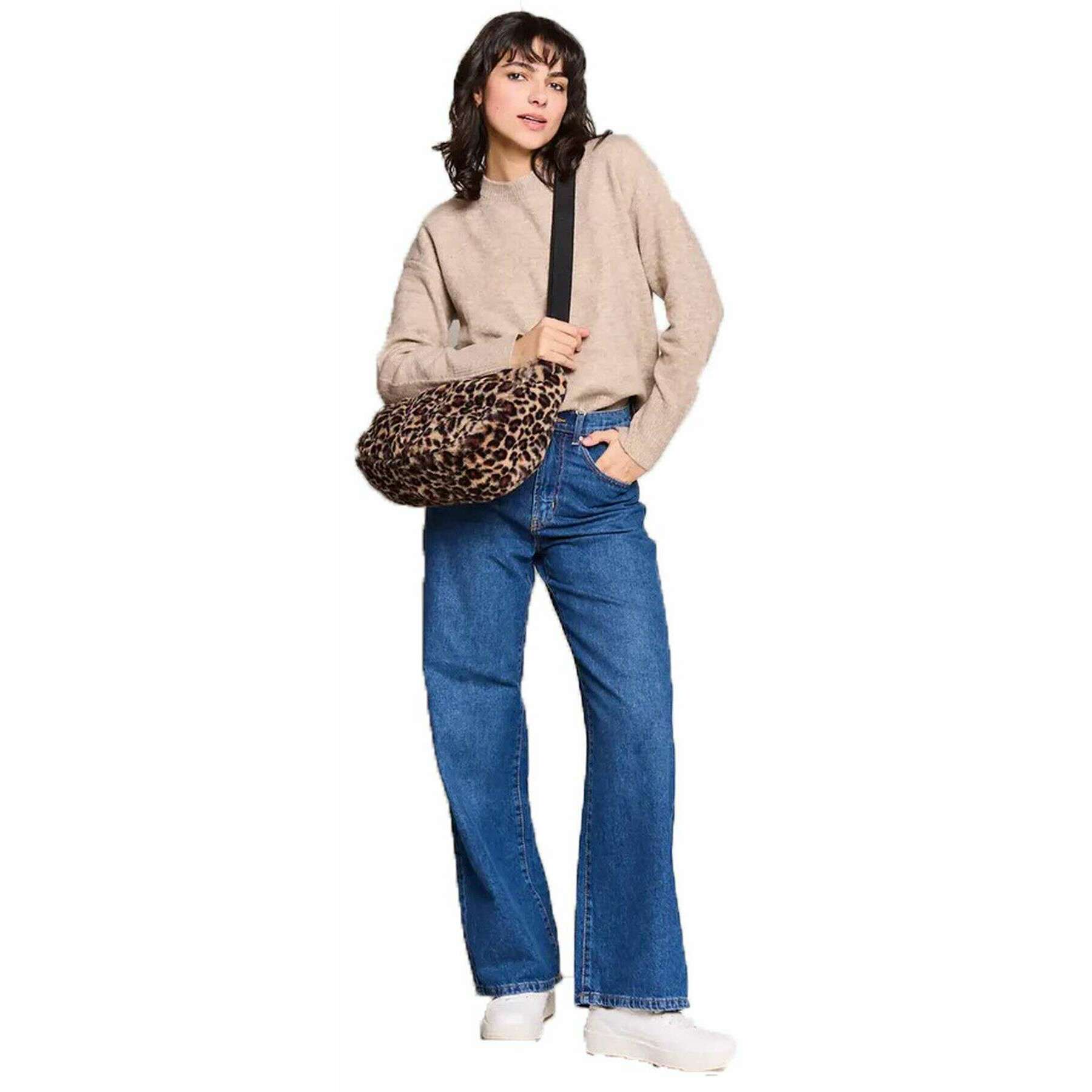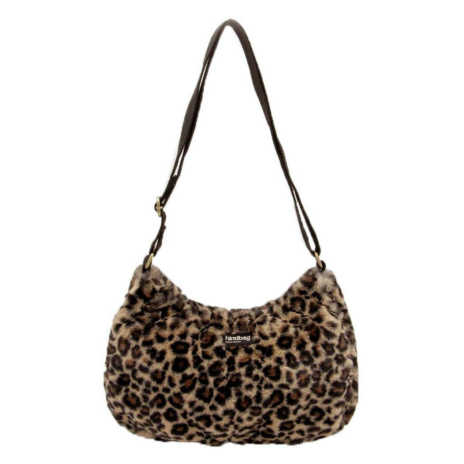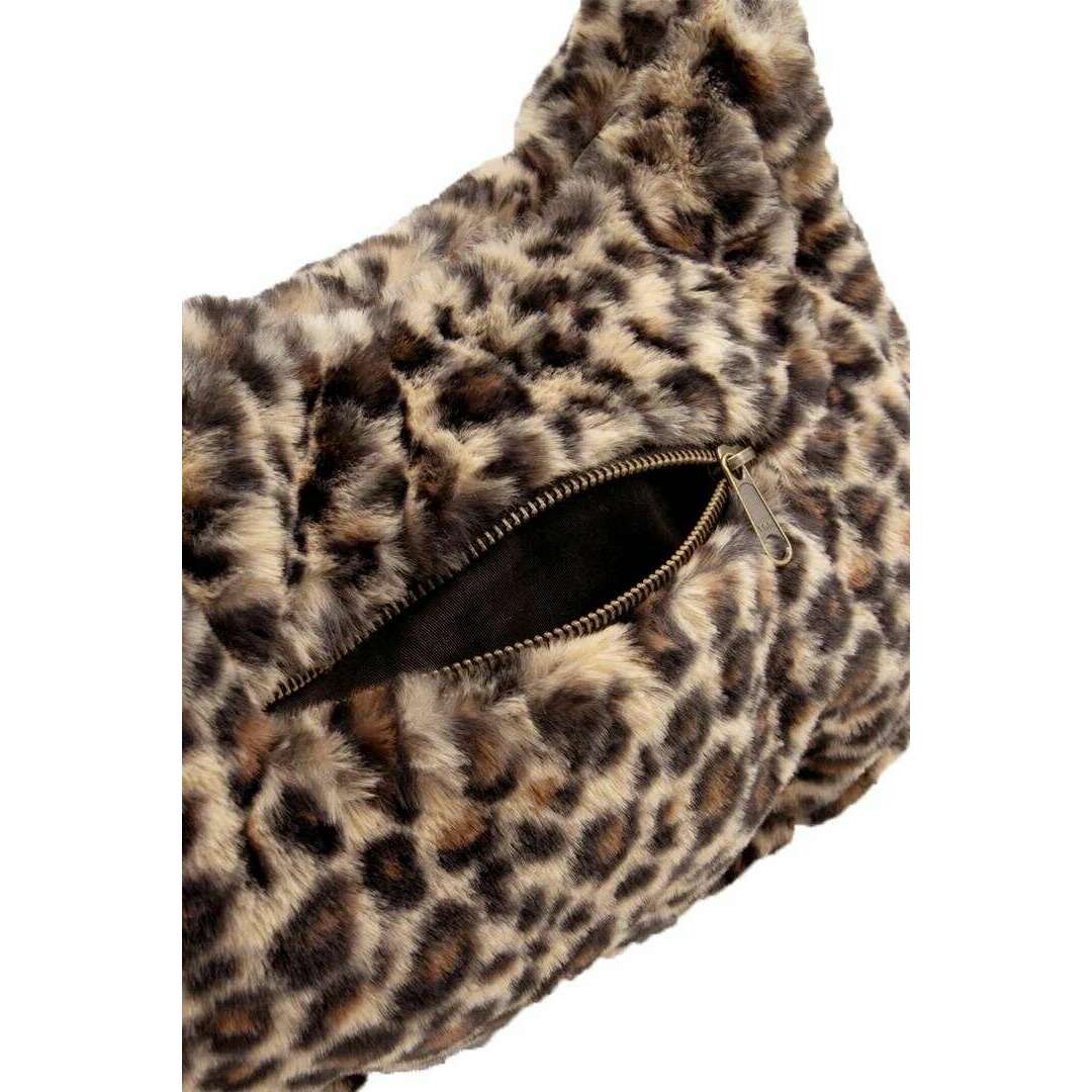 Hindbag Rosa大きなショルダーバッグ-Faux Fur Leopard Brown
