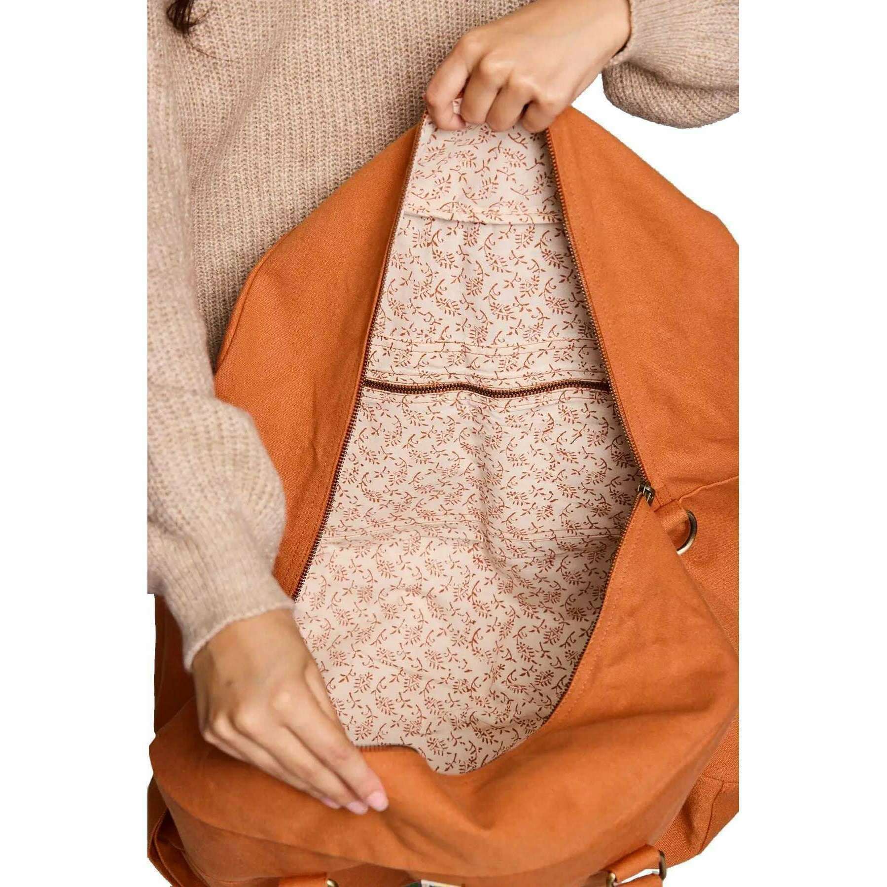 男性や女性に最適です。 33cm(高さ)x 54cm(幅)x 24cm(深さ)を測定します。すべてのバッグには、HindBagパッケージが付いています。 Hindbag Yves Large Travel Bag -Sienna Orangeは、旅行者向けの広々とした環境に優しいオプションです。厚いGots認定のオーガニックコットンから作られたこのバッグは、組織用の複数のポケット、安全なジッパー閉鎖、エレガンスのタッチを追加する印刷された内側の裏地を備えています。ハンドルと大きな調整可能なショルダーストラップを使用すると、このバッグは手または肩に簡単に運ぶことができます。
