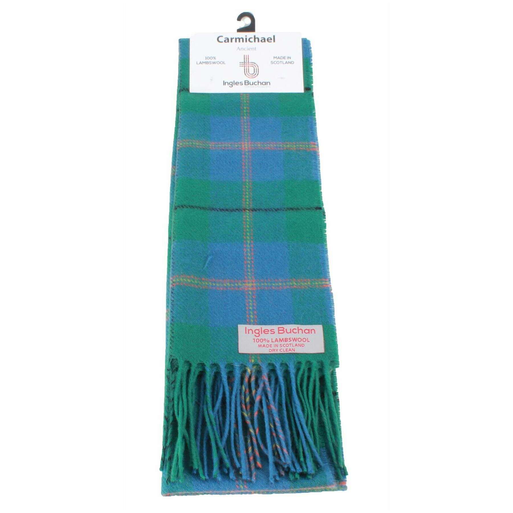 Ingles Buchan Carmichael エンシェント ラムズウール スカーフ - グリーン/ペールブルー/イエロー