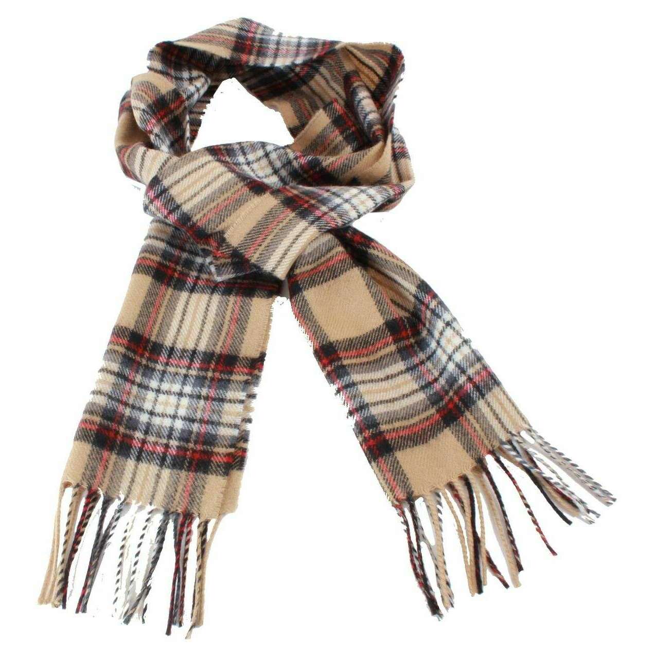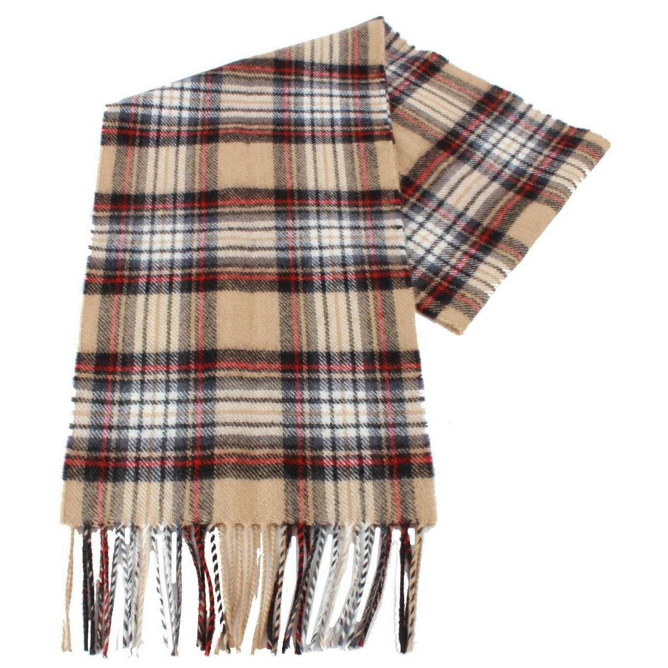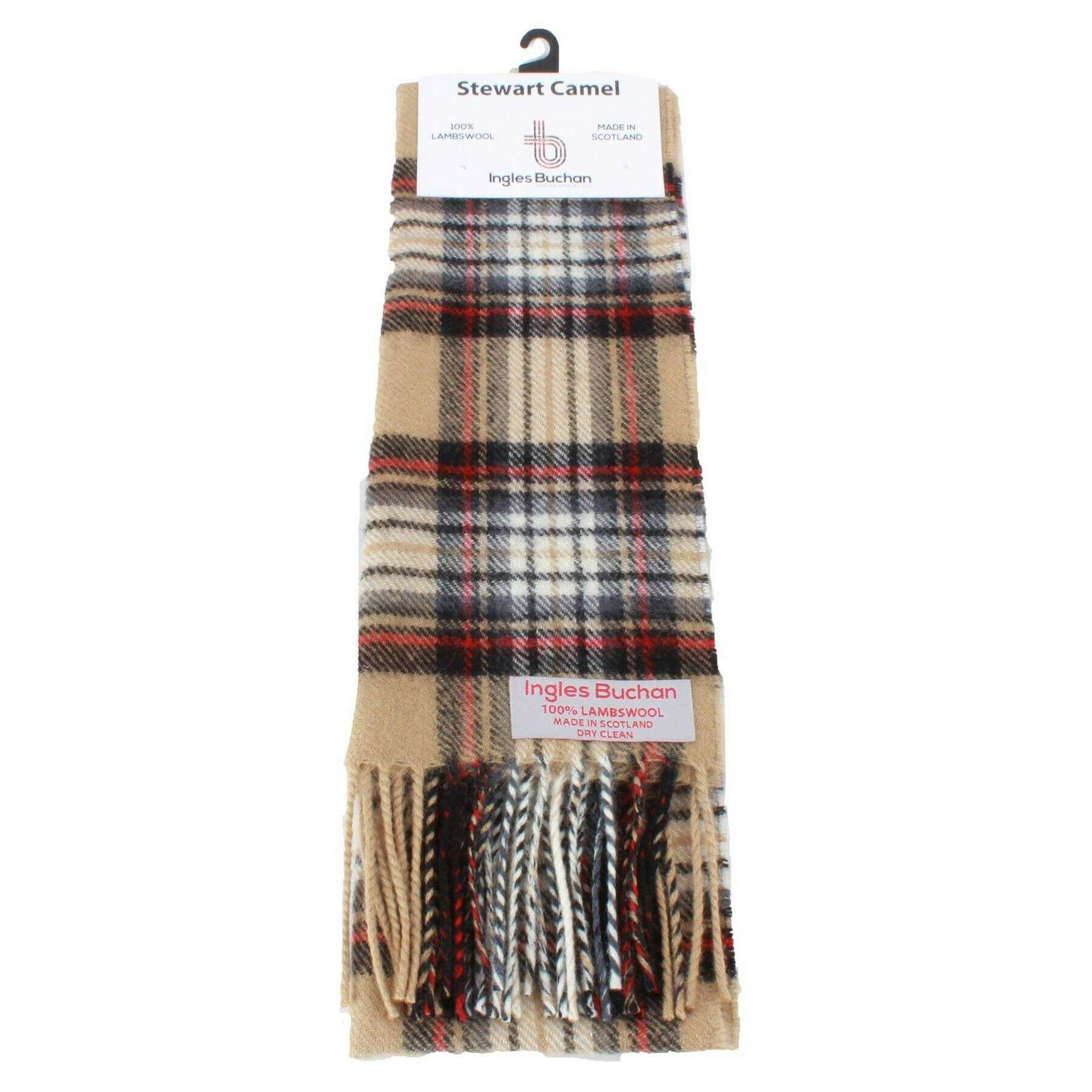 Ingles Buchan Stewart Camel モダン ラムズウール スカーフ - ベージュ/ブラック/レッド