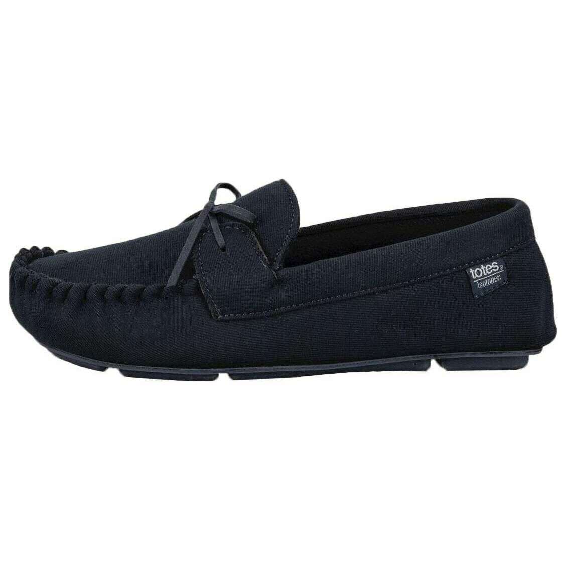 Isotoner ヘリンボーン裏地付きモカシン スリッパ - ネイビー