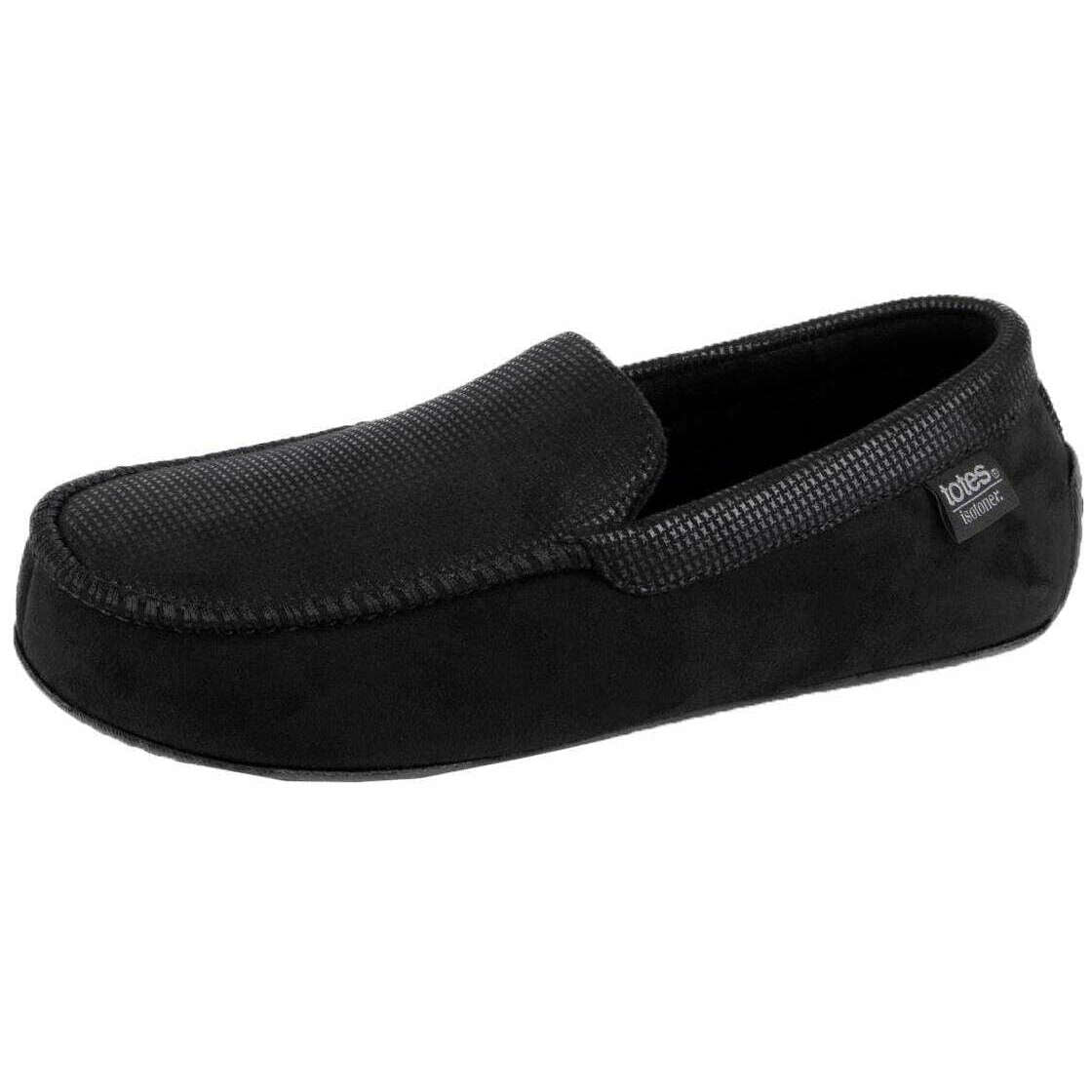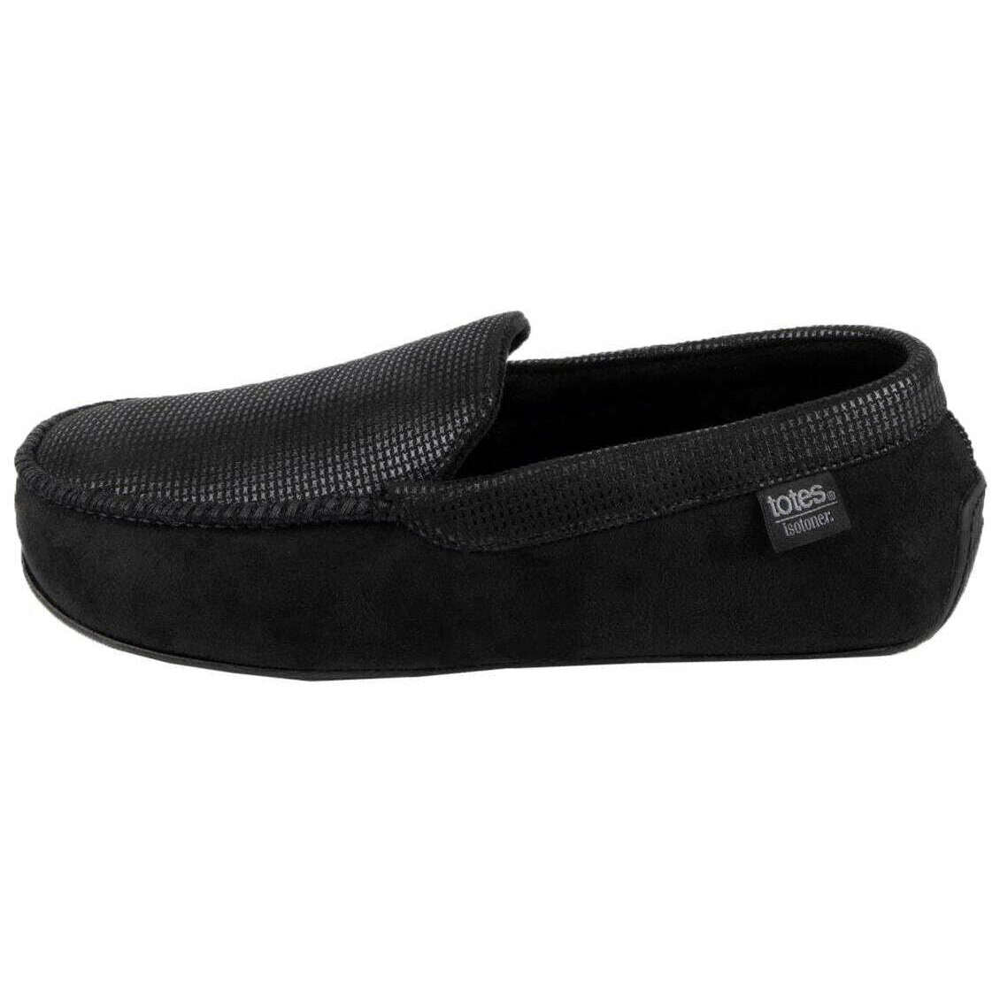 Isotoner スクエア パターン スマート モカシン スリッパ - ブラック