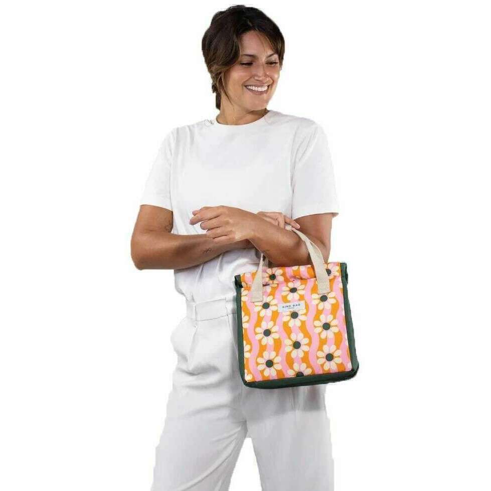 親切なバッグロンドンランチバッグ - 波状のデイジーオレンジ/グリーン/ピンク