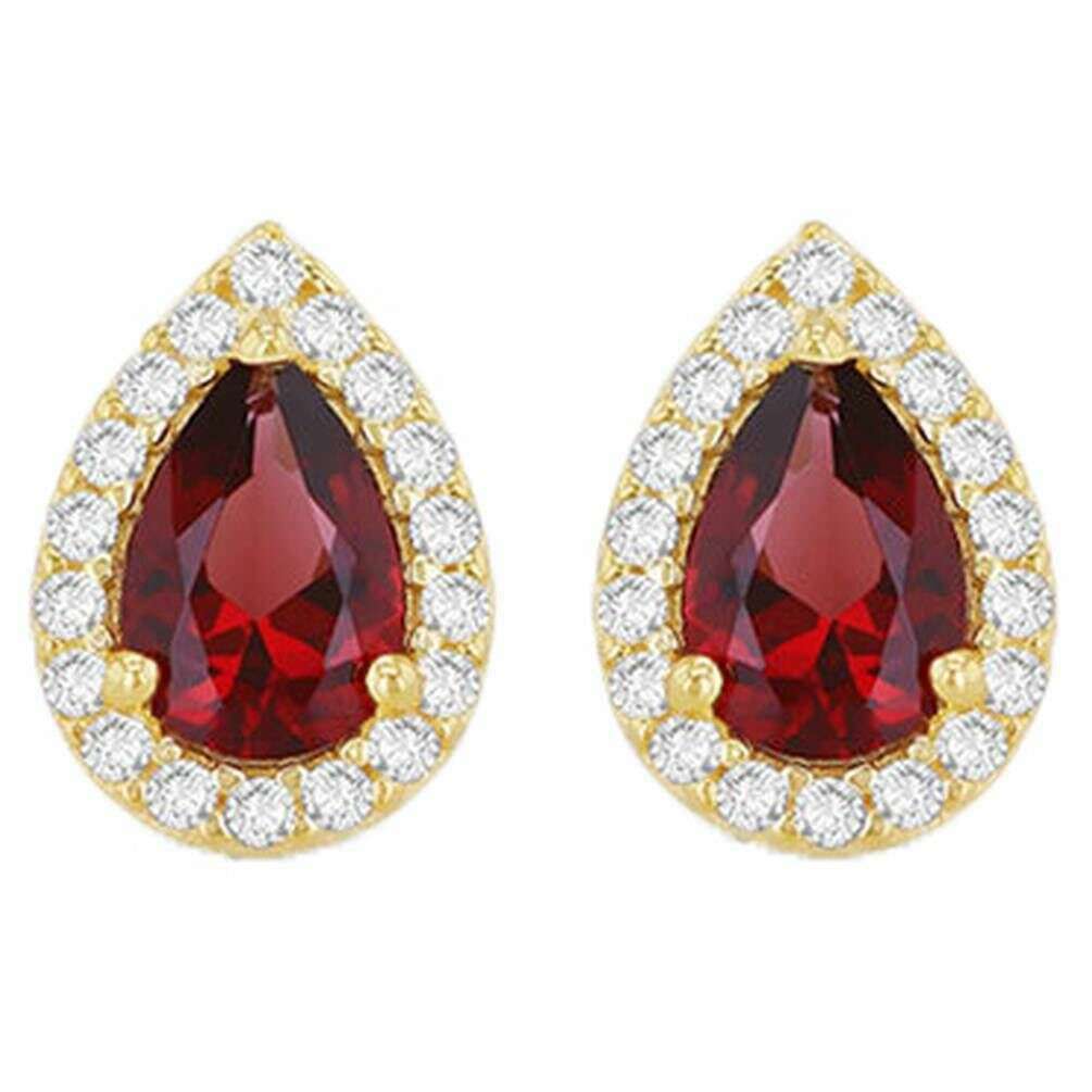 KJ Beckett ペアシェイプ Halo スタッド イヤリング - イエローゴールド/レッド