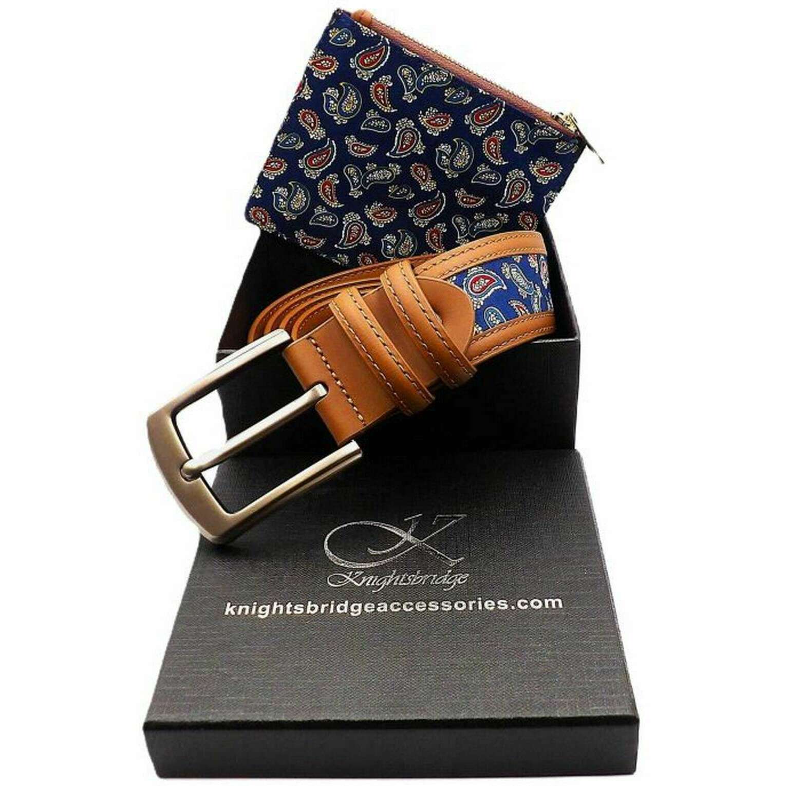 Knightsbridge Neckwear Belgravia ペイズリー ベルトとウォレット セット - タン ベージュ