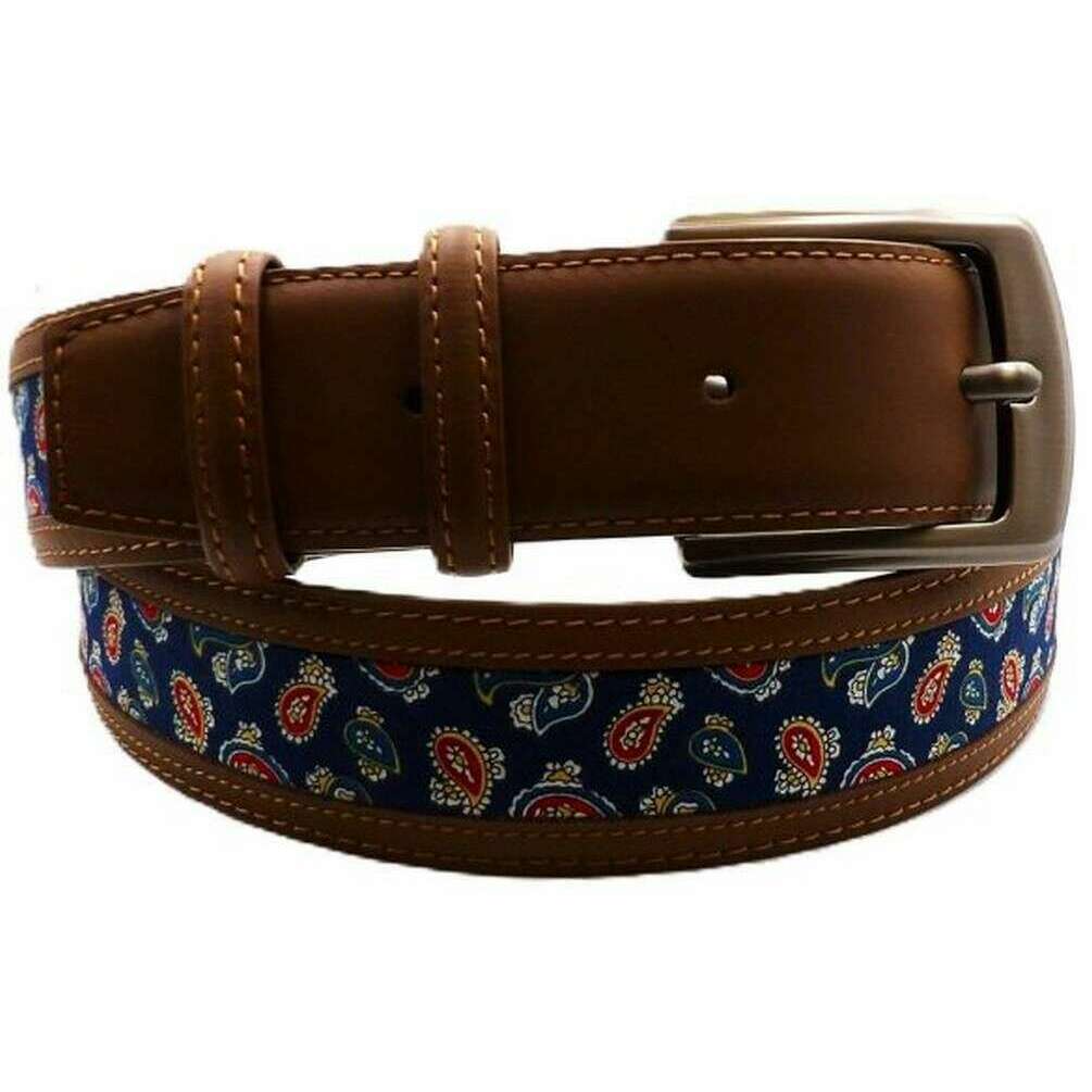 Knightsbridge Neckwear バッキンガム ペイズリー レザー ベルト - ブラウン