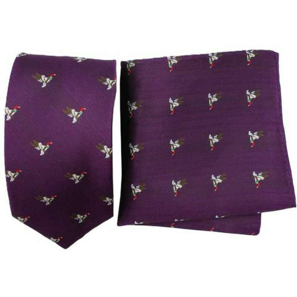 Knightsbridge Neckwear ダック シルク ネクタイとポケットチーフ セット - パープル