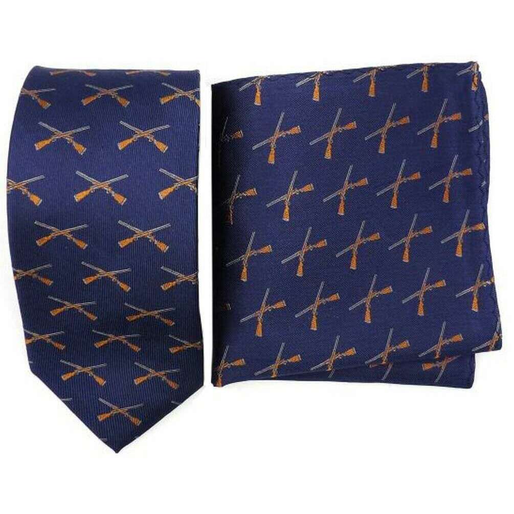 Knightsbridge Neckwear ガンウーブン シルク ネクタイとポケットチーフ セット - ネイビー