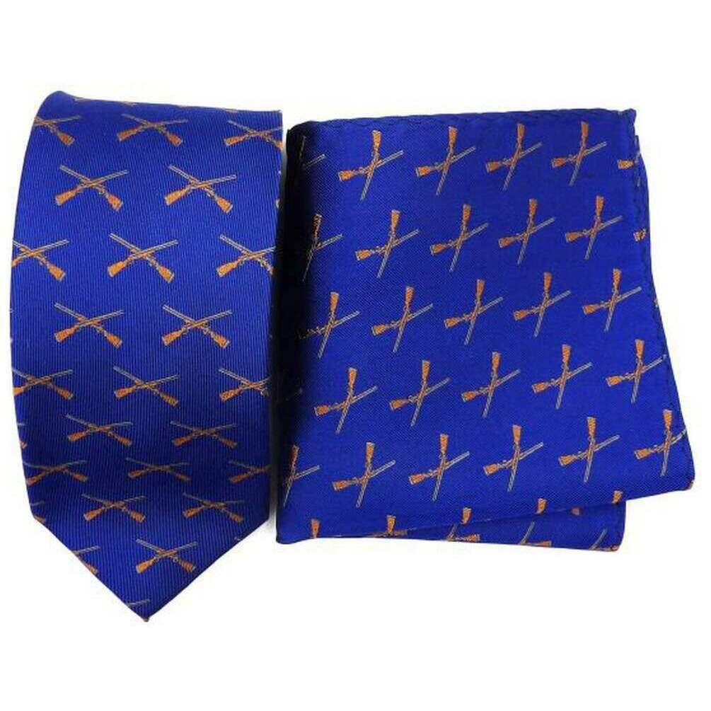 Knightsbridge Neckwear ガンウーブン シルク ネクタイとポケットチーフ セット - ロイヤル ブルー