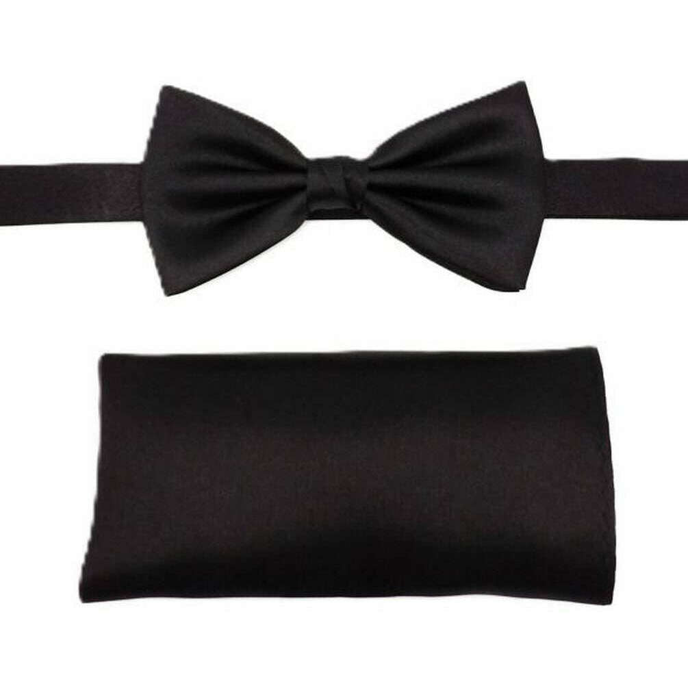 Knightsbridge Neckwear サテン蝶ネクタイとポケットチーフのセット - ブラック