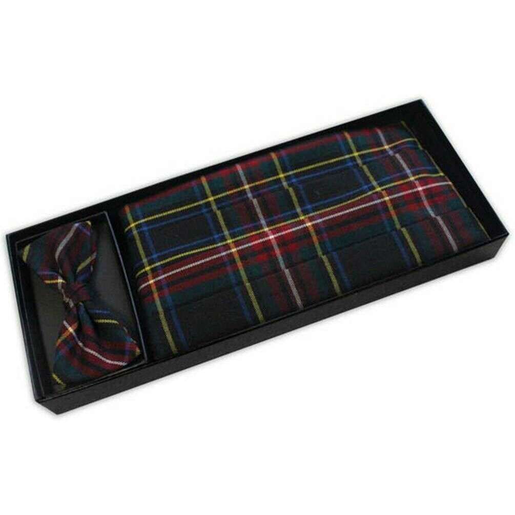 Knightsbridge Neckwear タータンチェック カマーバンドと蝶ネクタイ セット - ブルー/グリーン