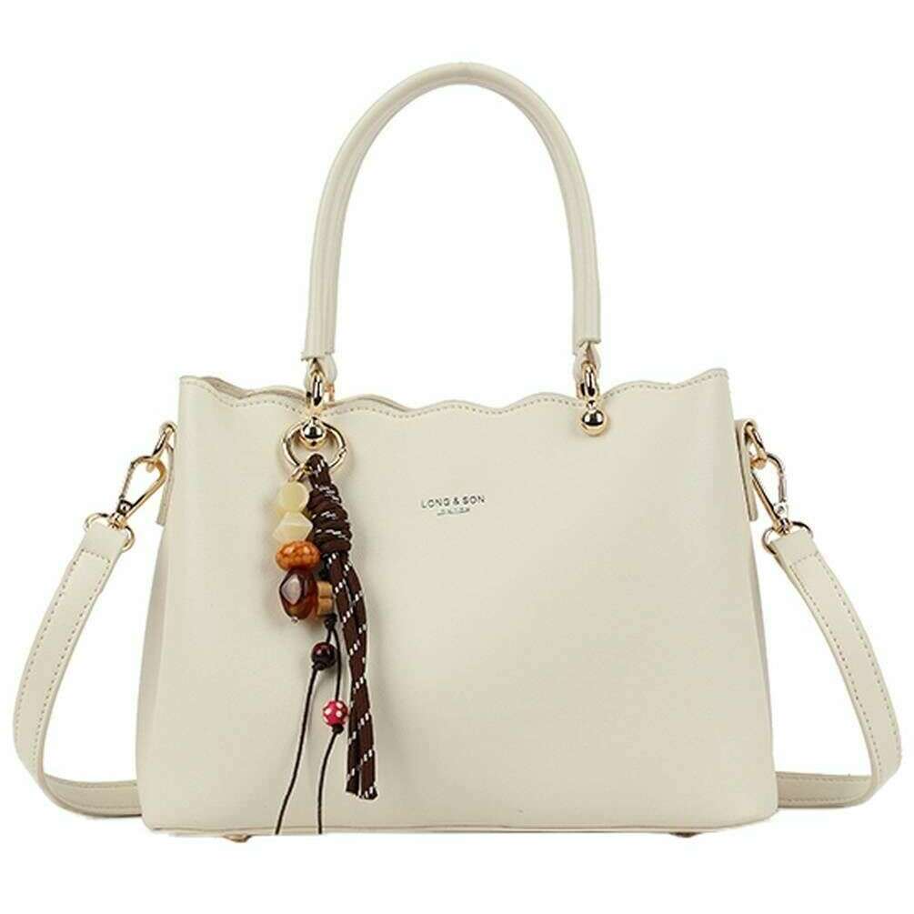 ホワイト 100% ポリウレタンを使用した Long and Son のこのスカラップエッジ クロスボディ バッグは、女性に最適で、必需品です。サイズは18cm(高さ)×24.5cm(幅)×11cm(奥行き)です。すべてのバッグにはロング&サンのパッケージが付属しています。ロング アンド サン スカラップ エッジ クロスボディ バッグ - オフ ホワイトは、ポケットを備えた大きな内部、ジッパーの両側に追加の収納用の磁気クロージャーで固定された追加のコンパートメント、および置いたときに保護する足のスタッドが特徴です。このバッグは、2つのキャリーハンドルと取り外し可能な調節可能なクロスボディストラップを備えたクロスボディバッグとしてもハンドバッグとしても使えます。多用途性と最適な収納力により、毎日のバッグに最適です。スカラップのディテールがガーリーな印象を与えます。