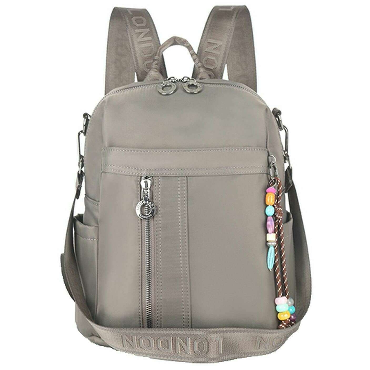 女性に最適なこのロング アンド サン ダークグレーのショルダー バックパックは、100% ポリウレタン製です。サイズは30cm(高さ)×29cm(幅)×12cm(奥行き)です。すべてのバッグにはロング&サンのパッケージが付属しています。ロング アンド サン ショルダー バックパック - ダークグレーのモダンでスタイリッシュなバックパックは、どこへでも一緒に旅行できるバッグをお探しの場合に欠かせません。必需品などをすべて持ち運べる完璧なサイズでありながら、大きすぎたりかさばったりすることはありません。 2 つのフロント ジッパー ポケット、2 つのサイド オープン ポケット、バック ジッパー ポケット、複数の内部ポケットを備えており、あらゆる小物を収納し、整理整頓できます。さらに、このバッグには調節可能なブランドのバックストラップだけでなく、ブランドの取り外し可能なショルダーストラップも付いており、さまざまな用途に着用できます。フロントには取り外し可能なチャームが付いています。