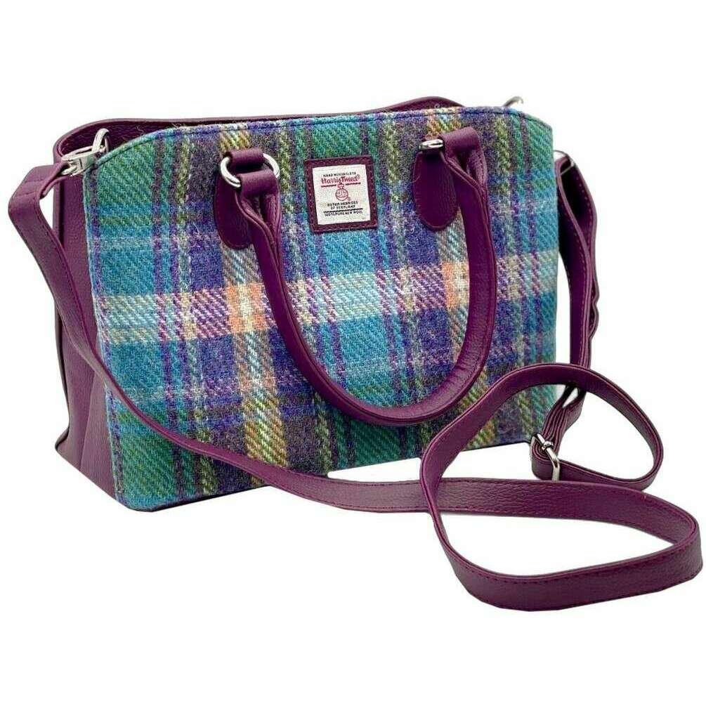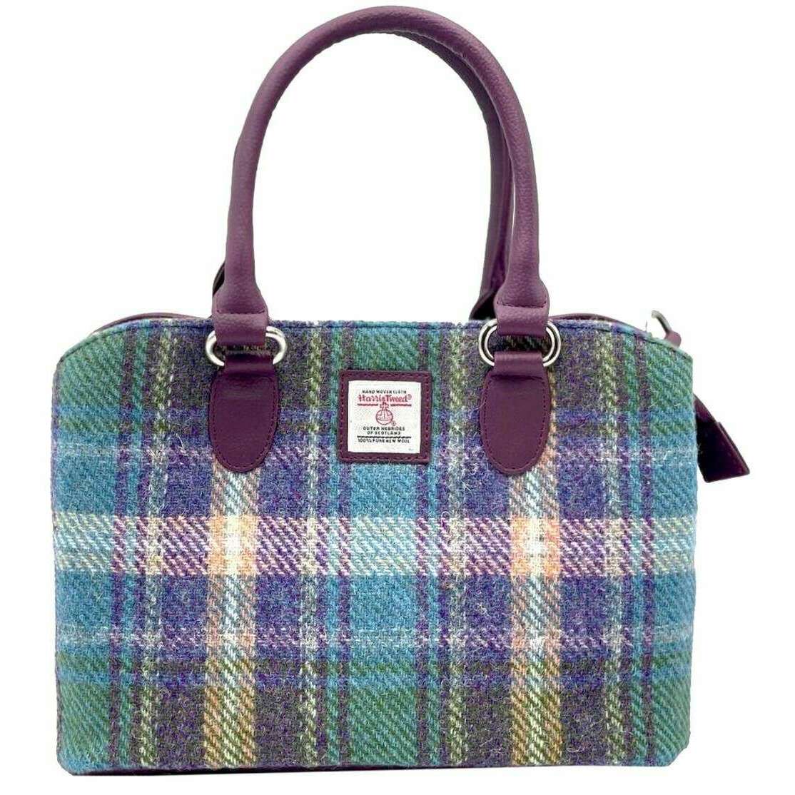 マアクセサリー ハリスツイード トップハンドルバッグ - グリーン/パープル