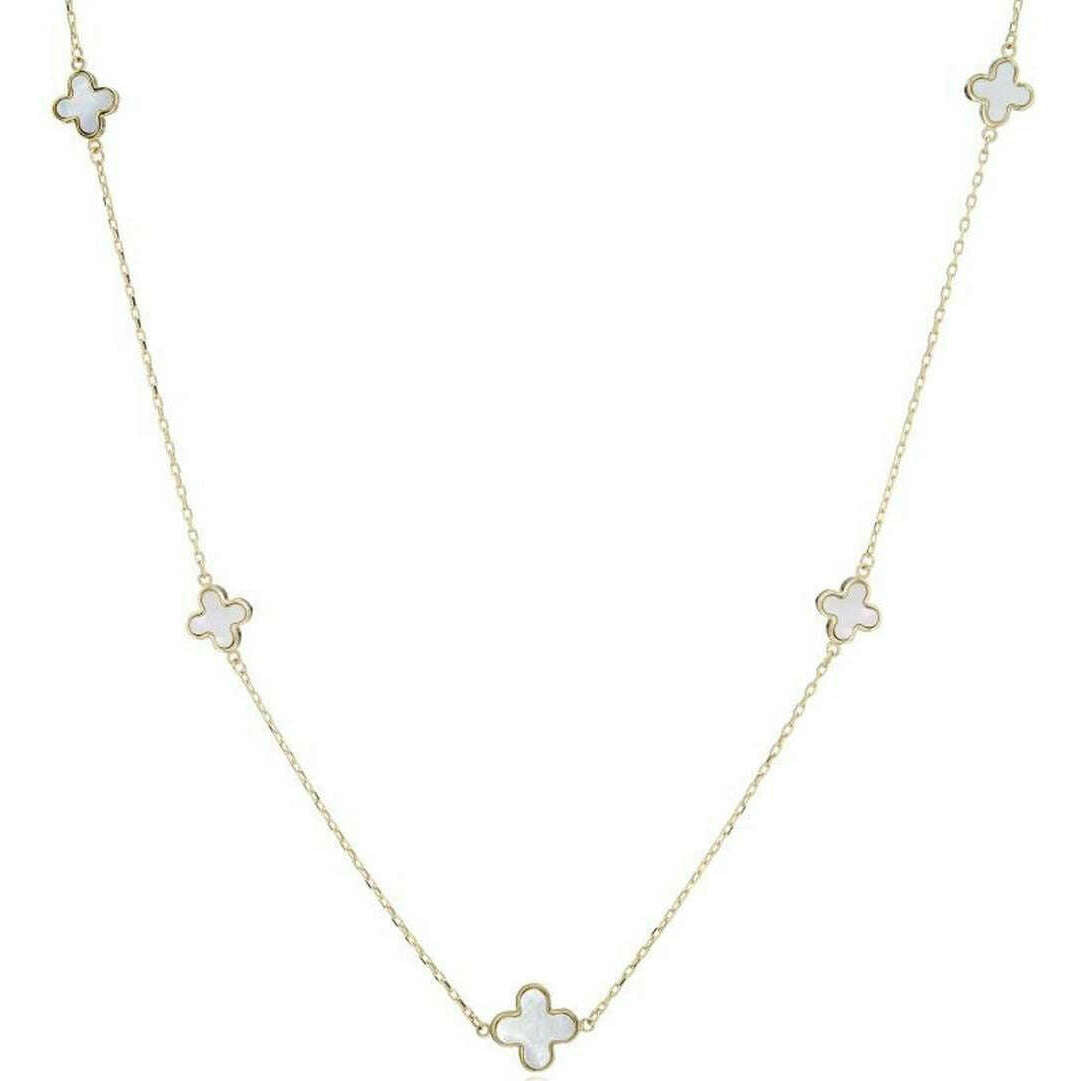 この女性用の5つのマザーオブパールフラワーネックレスは、ブランドによって作られています。 Mark Milton ゴールドカラーで9ctゴールド製です。大きさは46cm(長さ)です。すべてのネックレスにはマーク・ミルトンのパッケージが付属します。の Mark Milton 5 つのマザー オブ パール フラワー ネックレス - イエロー ゴールド/ホワイトは、ゴールド チェーンに 5 つのマザー オブ パール ストーンの花が特徴です。このネックレスは繊細で目を引くデザインで、トレンディでありながらカジュアルな雰囲気で日常の着用に最適です。