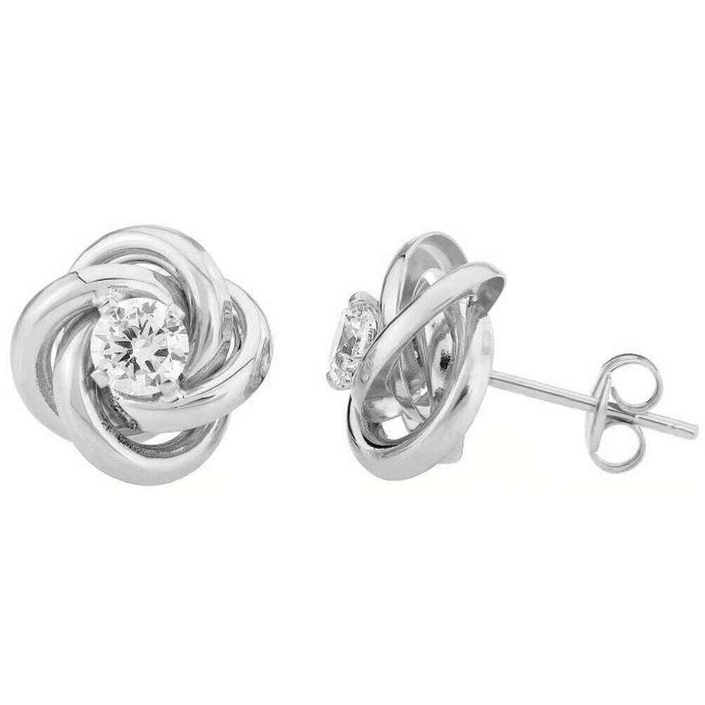 シルバー9ctゴールドを使用したノットキュービックジルコニアピアスです。 Mark Milton 女性に最適で必須アイテムです。サイズは1cm(高さ)×1cm(幅)×0.6cm(奥行き)です。すべてのイヤリングにはマーク・ミルトンのパッケージが付属します。の Mark Milton ノット キュービック ジルコニア イヤリング - ホワイト ゴールドは、シルバー ダイヤモンドのノット デザインが特徴です。上品だけど華やかな印象にぴったりのイヤリングです。この磨かれた高品質のゴールドは、見た目も良く、長持ちするように作られています。