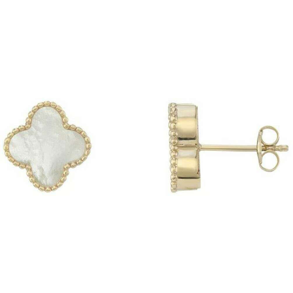ゴールド9ctゴールドを使用した、マザーオブパールフラワーピアス。 Mark Milton 女性に最適で必須アイテムです。サイズは1.1cm(高さ)×1.1cm(幅)×0.3cm(奥行き)です。すべてのイヤリングにはマーク・ミルトンのパッケージが付属します。の Mark Milton マザーオブパールフラワーイヤリング - イエローゴールド/ホワイトは、マザーオブパールストーンの花のデザインが特徴の美しいゴールドイヤリングです。このエレガントなイヤリングは、愛する人への贈り物にも、ワードローブに加えておきたい定番アイテムとしても最適です。