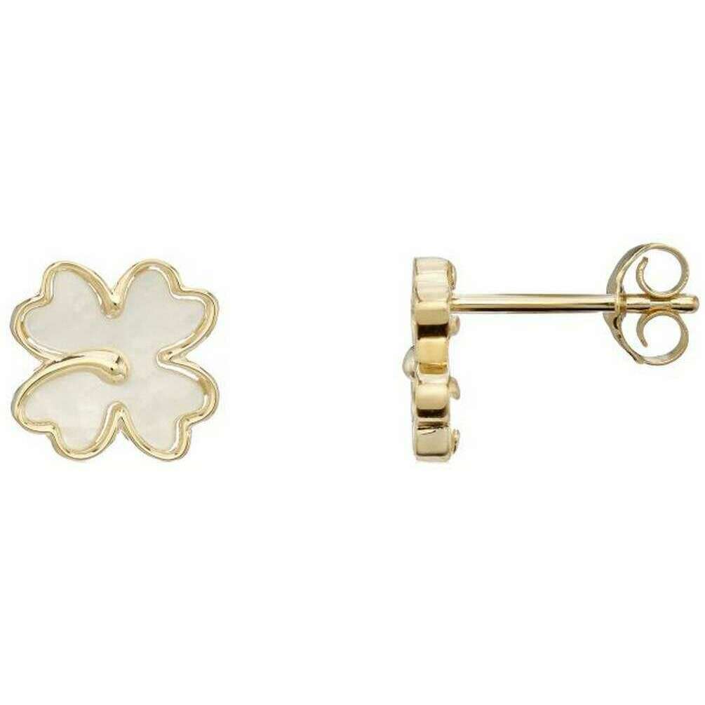 Mark Milton マザーオブパール 四つ葉のクローバー スタッド ピアス - イエローゴールド/ホワイト
