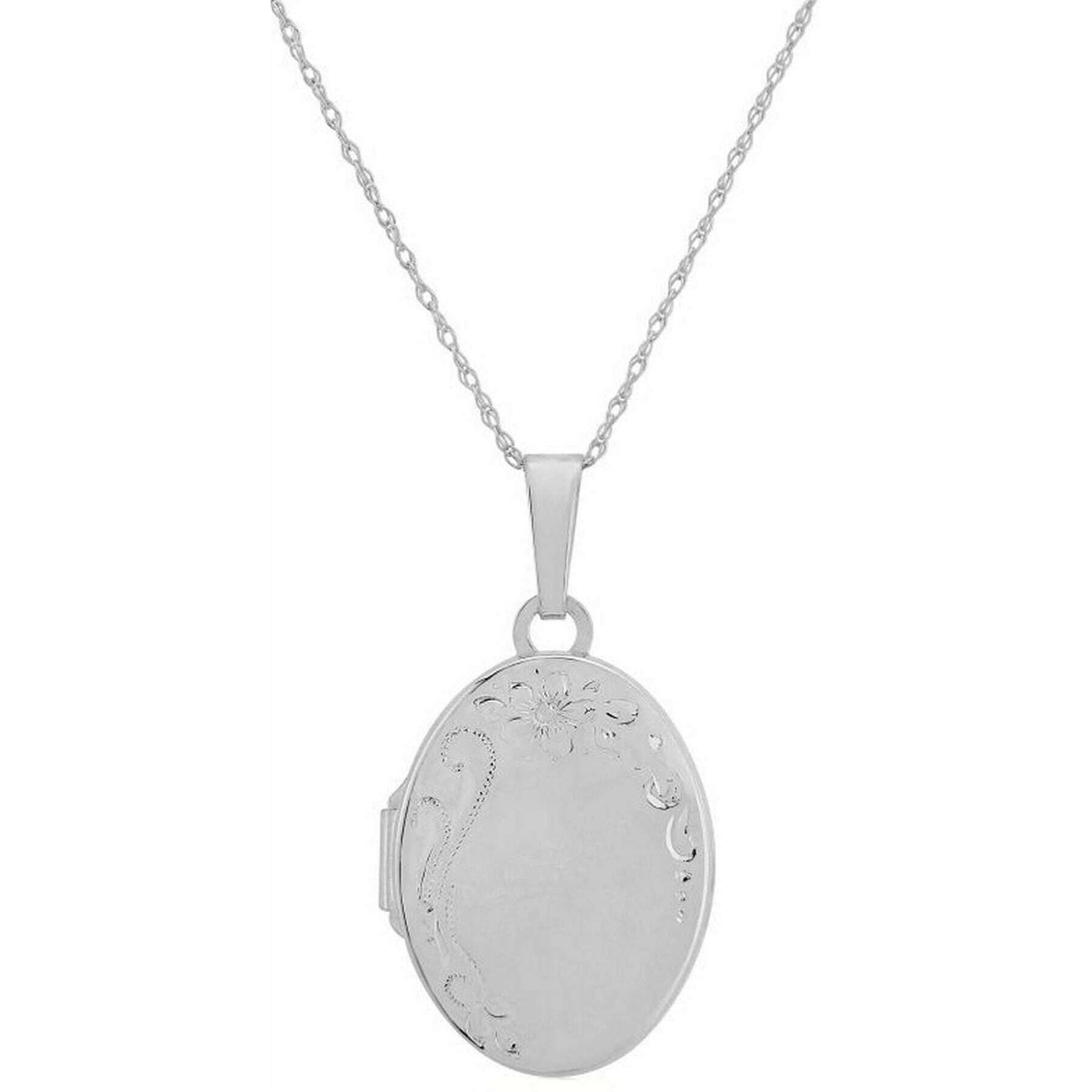 デザイナー Mark Milton シルバートーンを使用したこのレディーススターリングシルバーネックレスをお届けします。大きさは46cm(長さ)です。すべてのネックレスにはマーク・ミルトンのパッケージが付属します。の Mark Milton オーバル彫刻ロケットネックレス - シルバーは繊細なシルバー、前面に手彫りのデザイン、背面は滑らかなサテン仕上げが特徴です。理想的なサイズのこの意味のあるギフトは、愛する人のミニ写真や小さな記念品にも最適です。