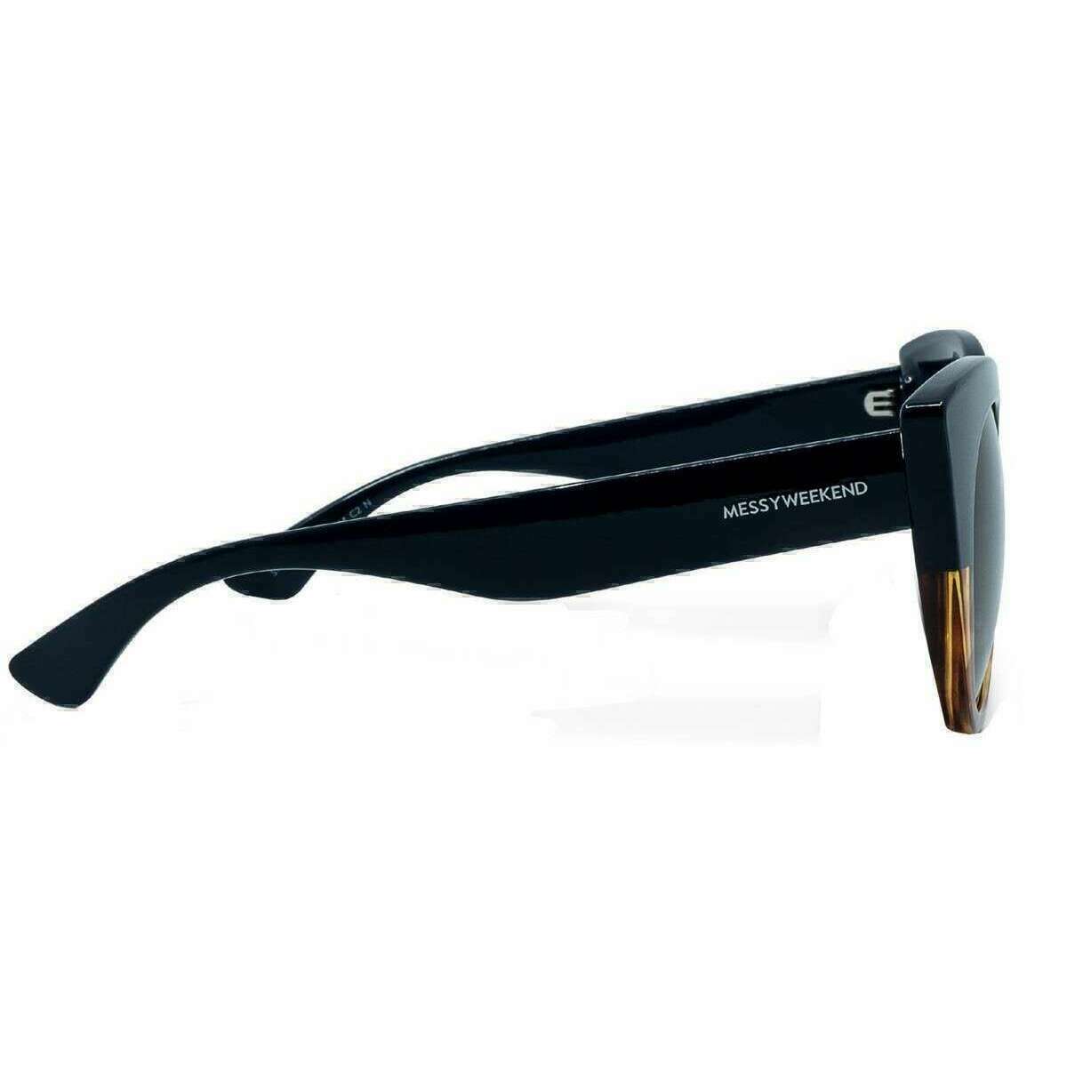 • 手作りのポリカーボネートフレーム、高品質のアンチスクラッチレンズ、100%UVA+UVB保護、ニッケルフリーヒンジ、寺院の乱雑なウィークエンドのロゴ