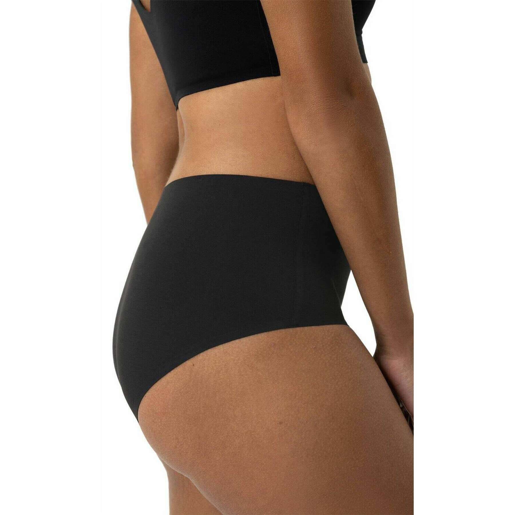 • エコテックススタンダード100認定、ハイウエストフィット、シームレス、フラットサイドシーム、コットンインサートガセット、通気性、ソフト、ストレッチ