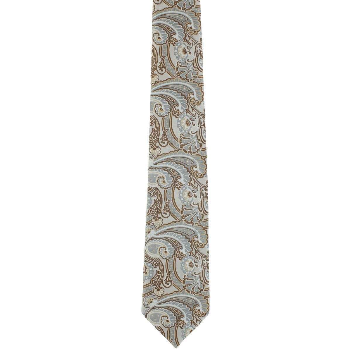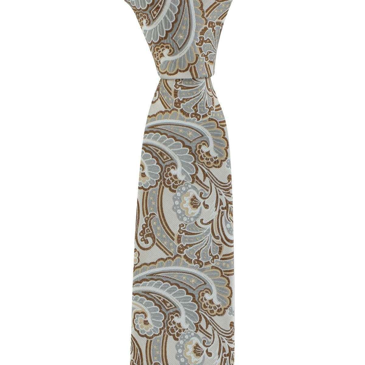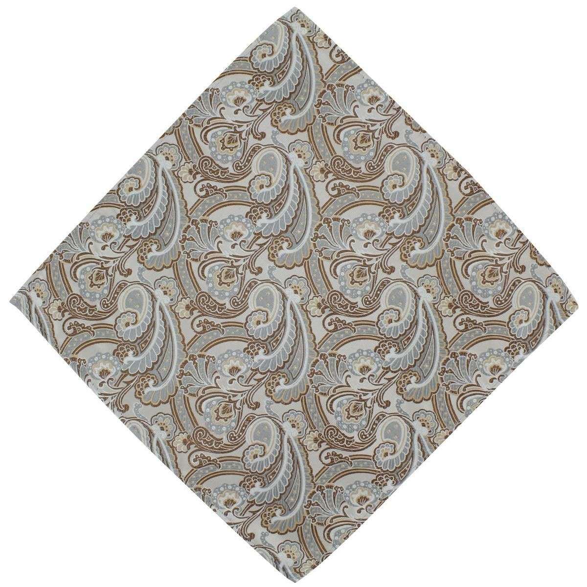 Michelsons of London 装飾用ペイズリーポリエステルタイとポケットスクエアセット - トープ/ブラウン