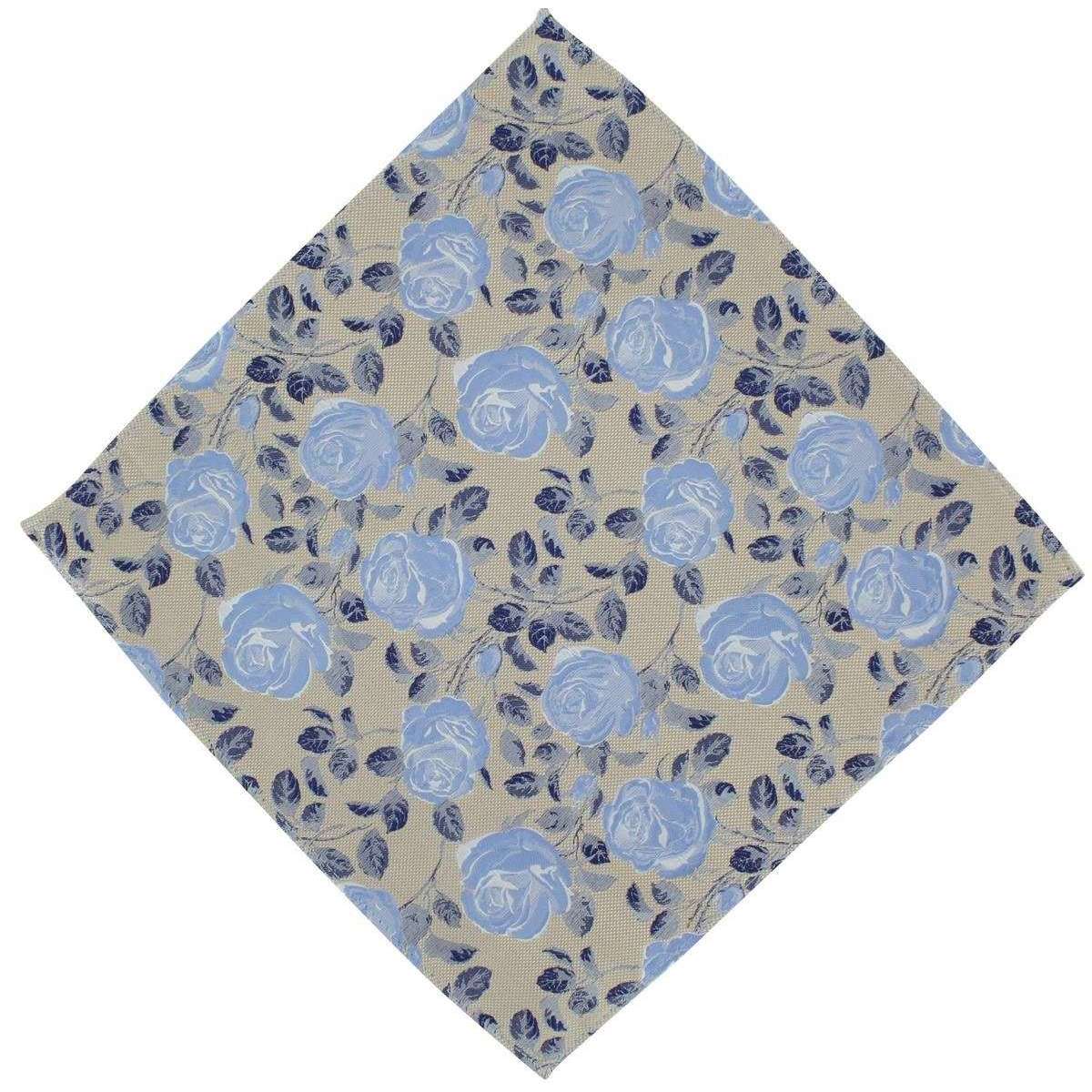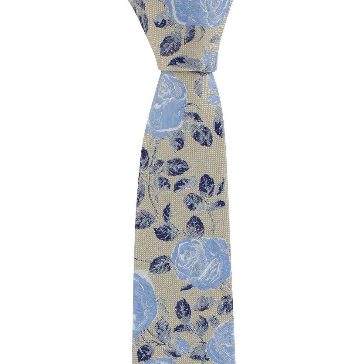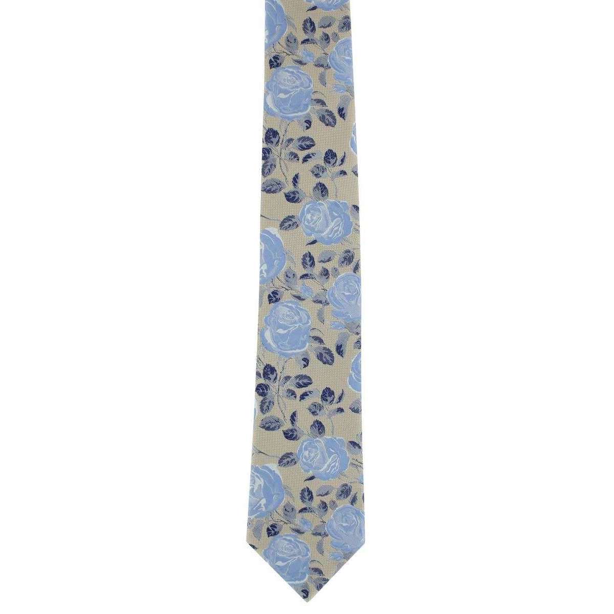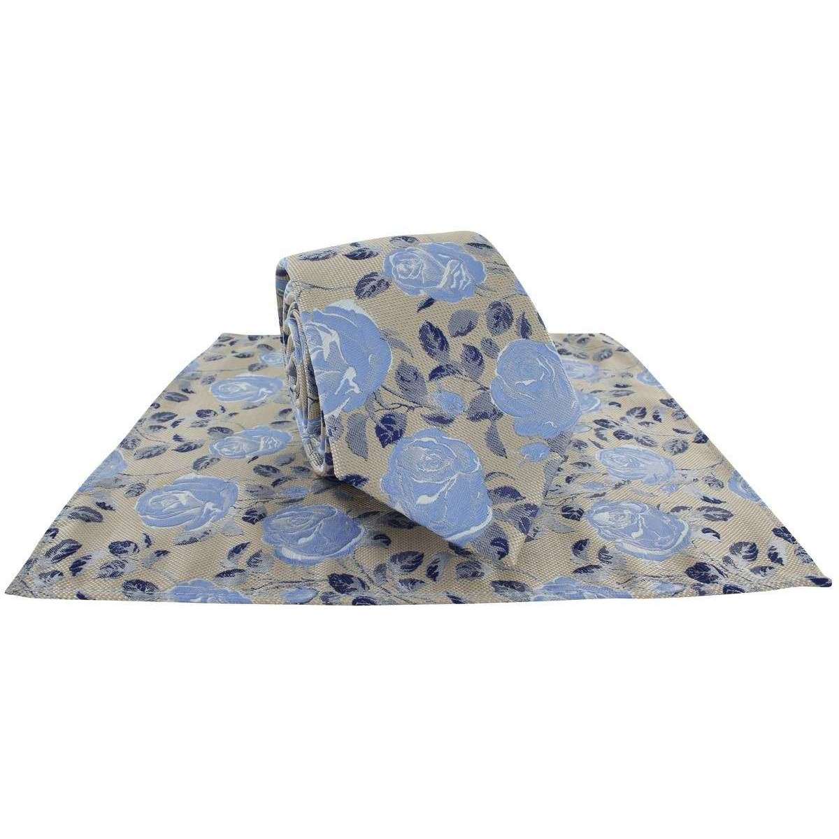 Michelsons of London テクスチャローズフローラルポリエステルタイとポケットスクエアセット-Taupe/Blue