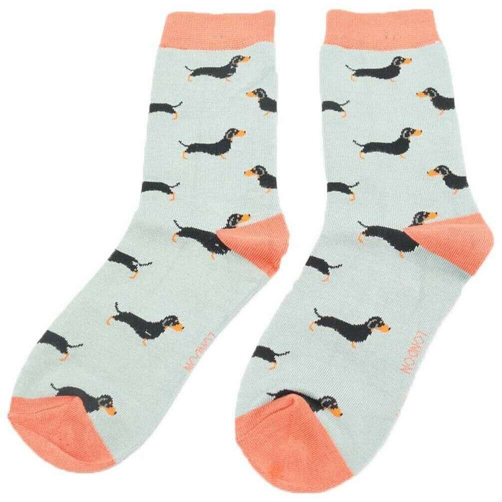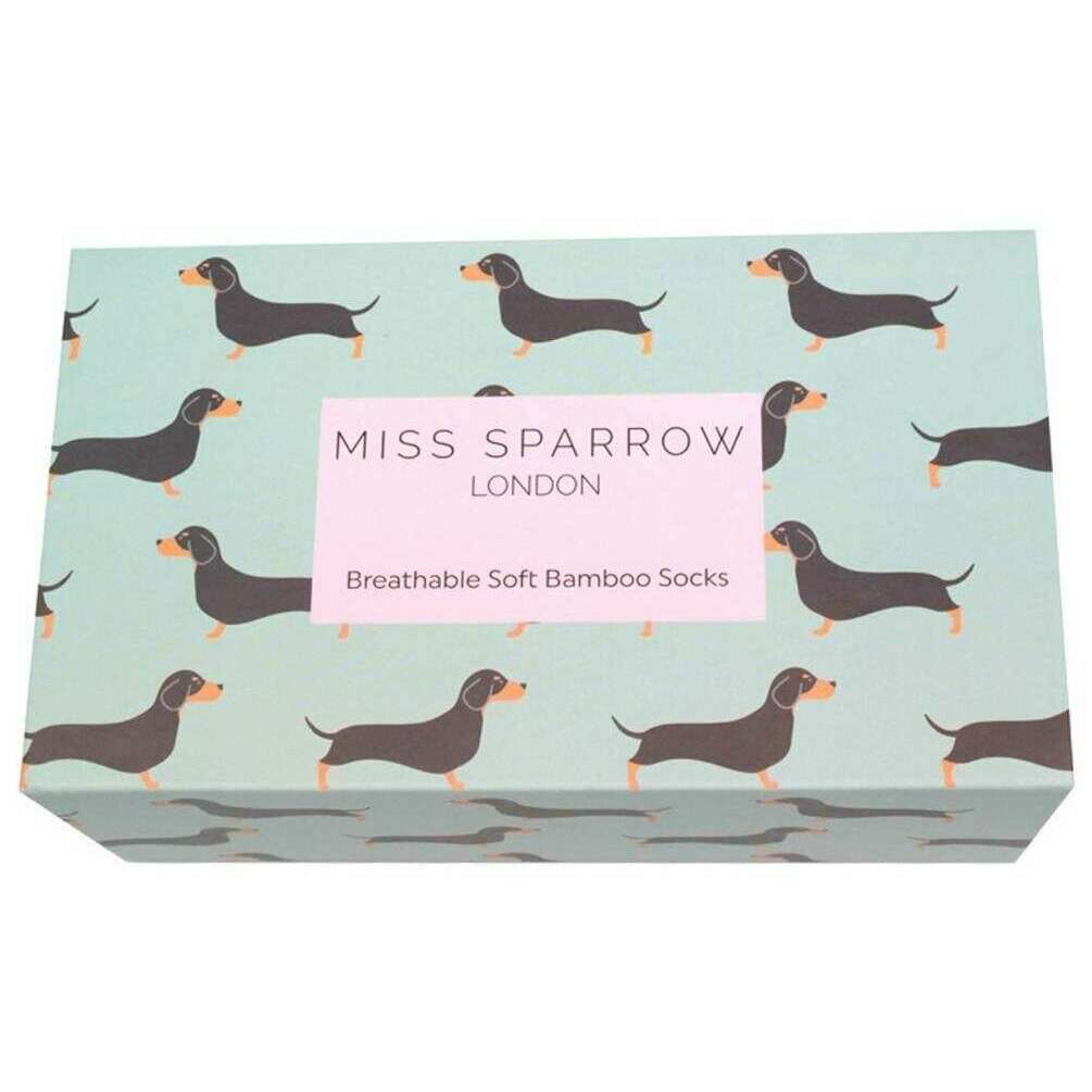 Miss Sparrow London リトル ソーセージ ドッグ 靴下ボックス 3 パック - ブルー/グリーン/イエロー